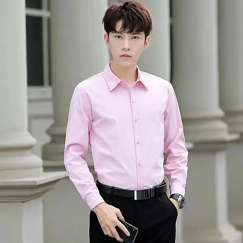Camisa Blanca para Hombre de Manga Larga Slim Primavera y Otoño Estilo Coreano Trendy Camisa de Negocios para Hombre Color Sólido Top Guapo