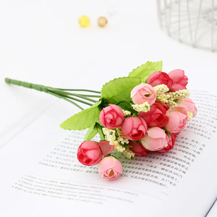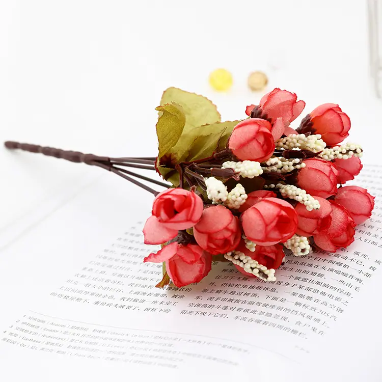 Rosa flor artificial plástico ramo arreglo sala de estar decoración del hogar flor de seda flores decorativas