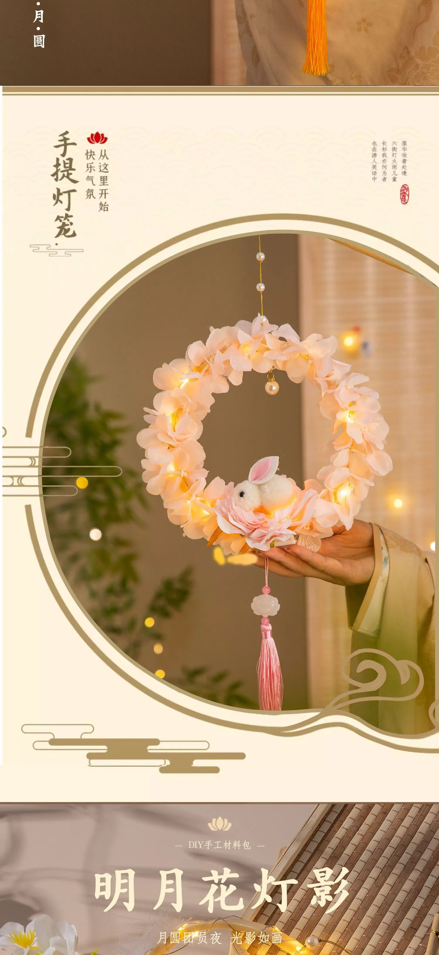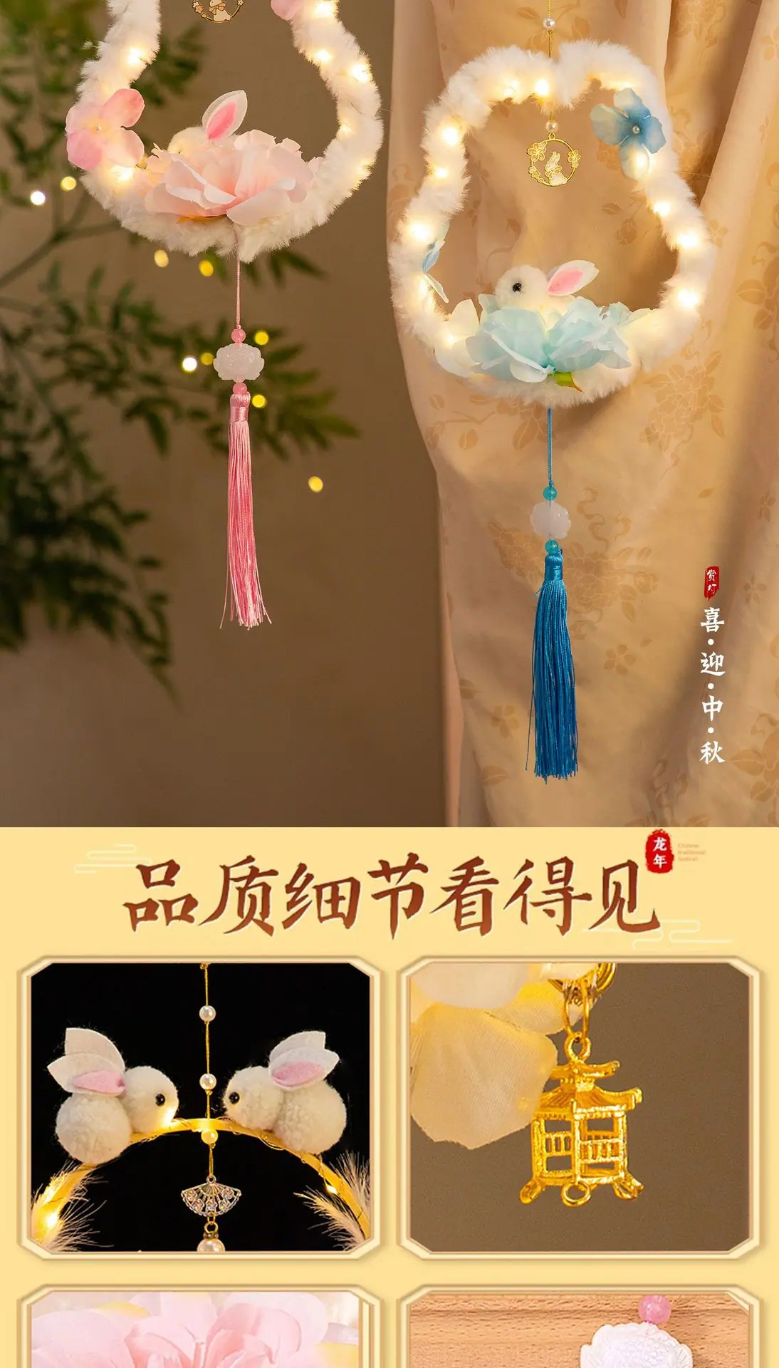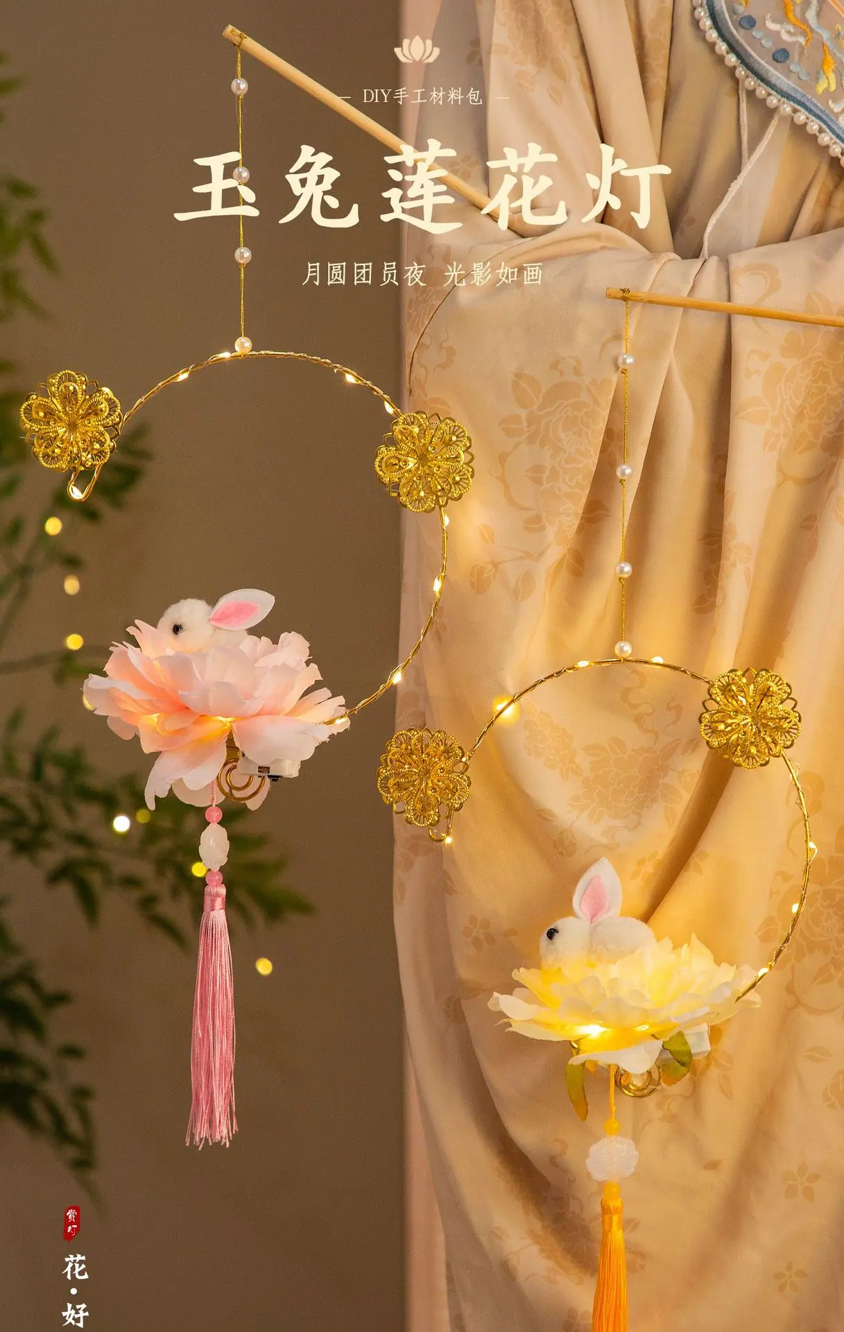 Compra Festival del Medio Otoño linterna de conejo paquete de materiales DIY hechos a mano para niños estilo antiguo portátil luminosa conejo de jade linterna de flor pequeña puesto callejero al por mayor en Joom.pro