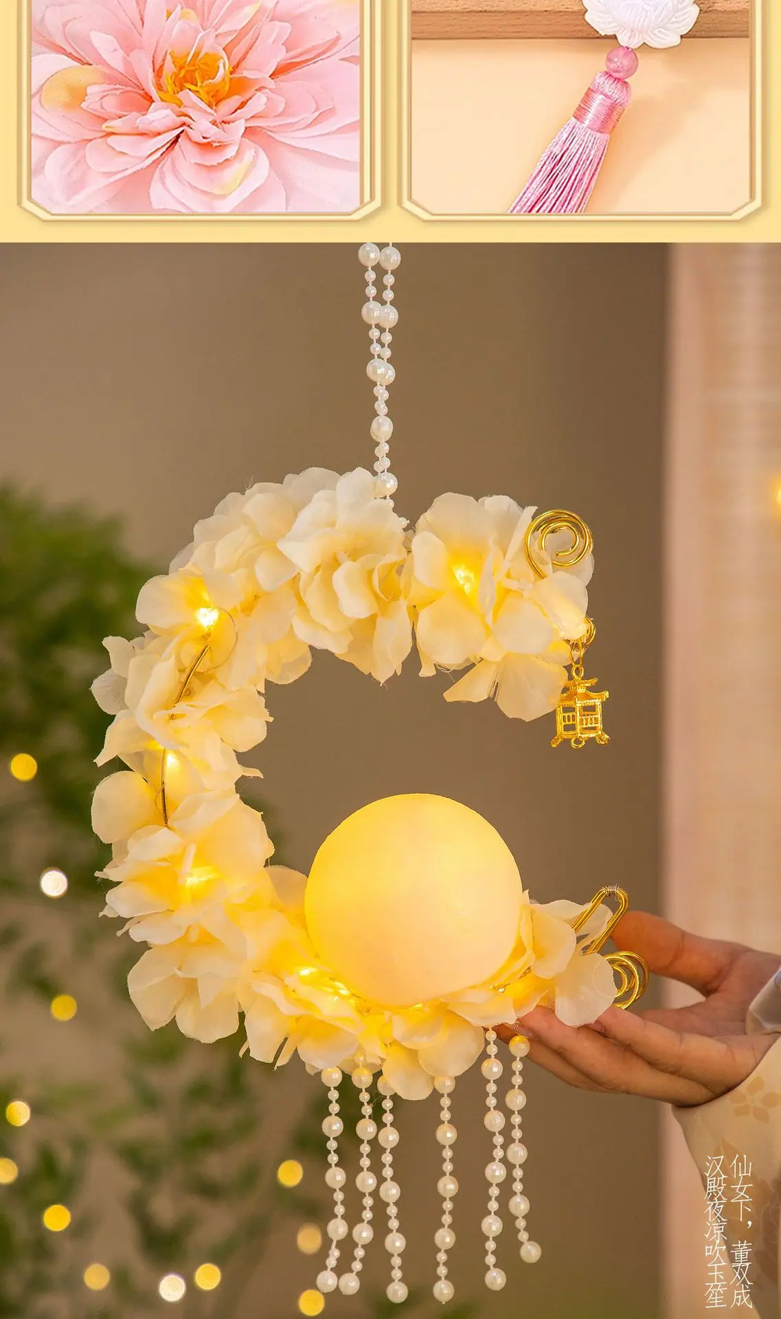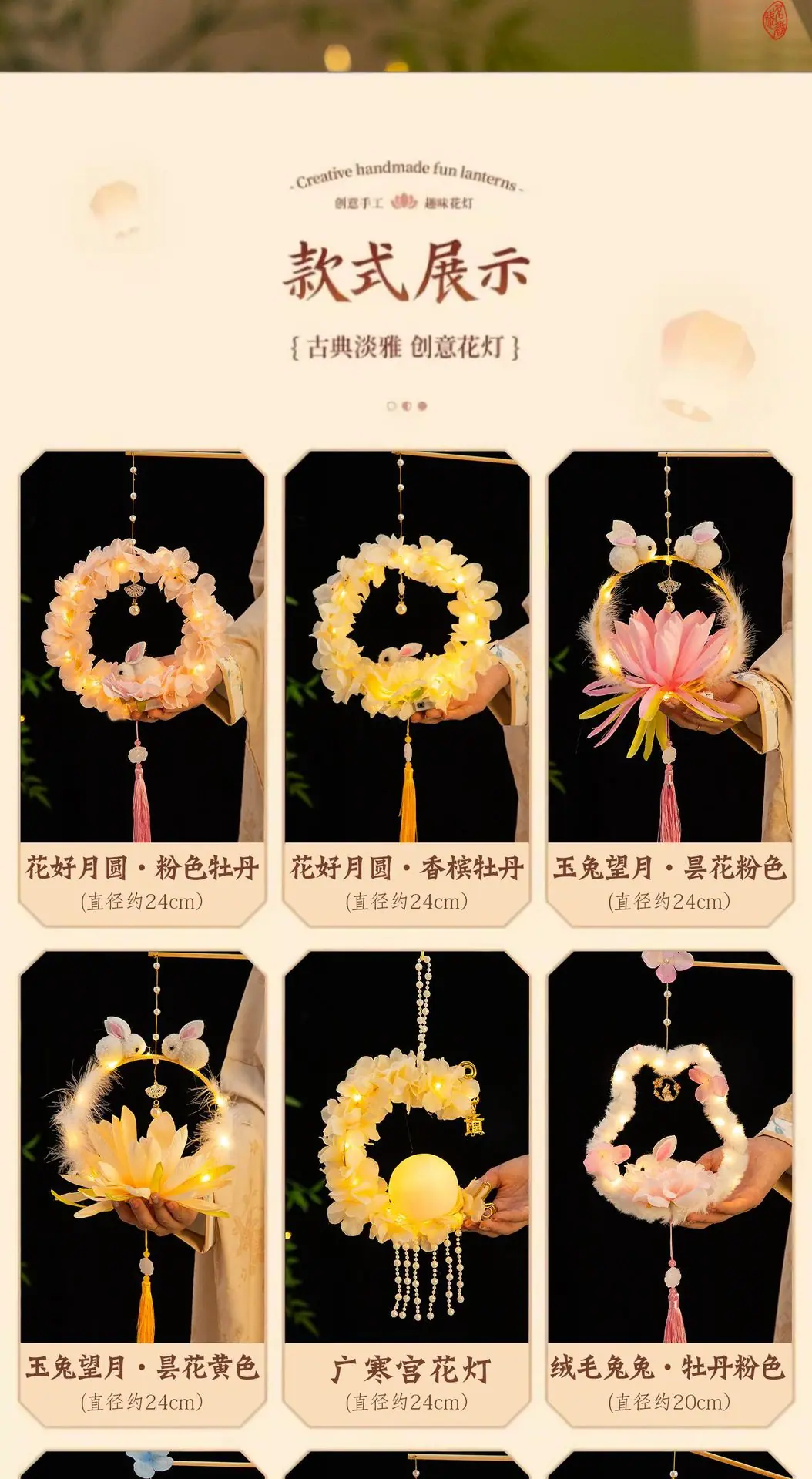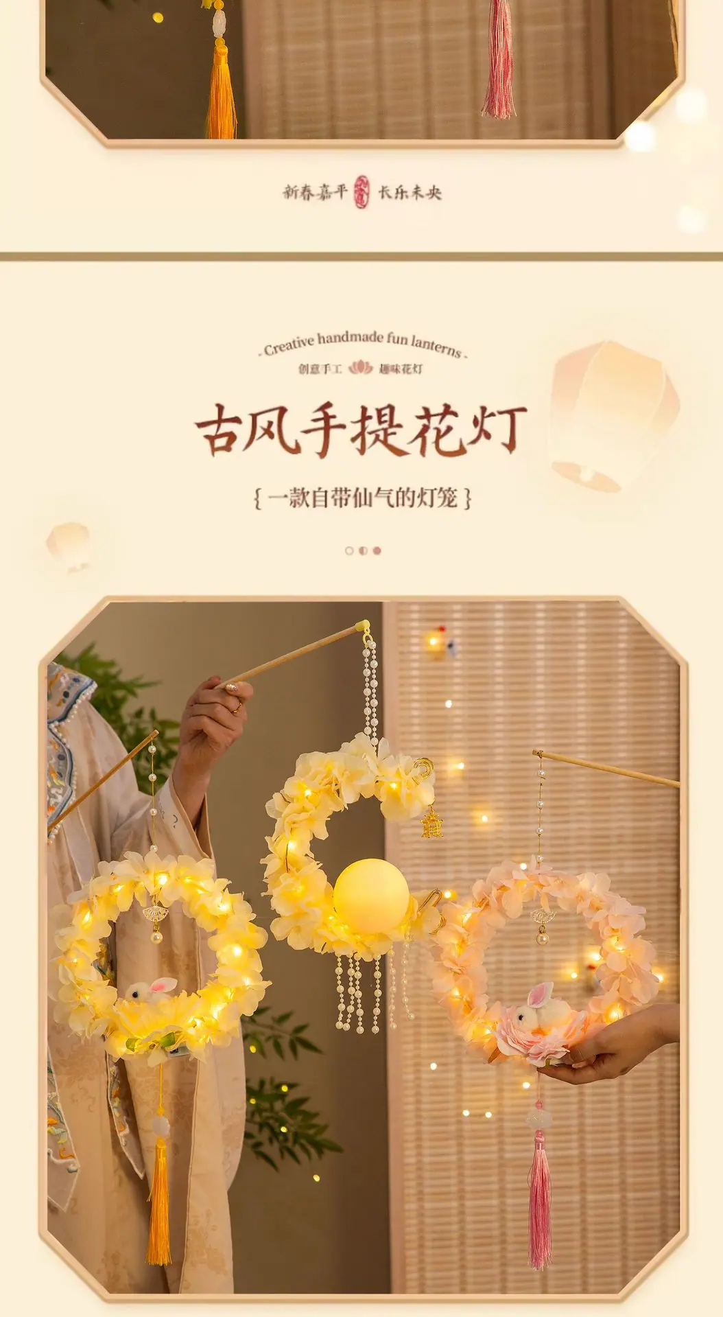 Compra Festival del Medio Otoño linterna de conejo paquete de materiales DIY hechos a mano para niños estilo antiguo portátil luminosa conejo de jade linterna de flor pequeña puesto callejero al por mayor en Joom.pro