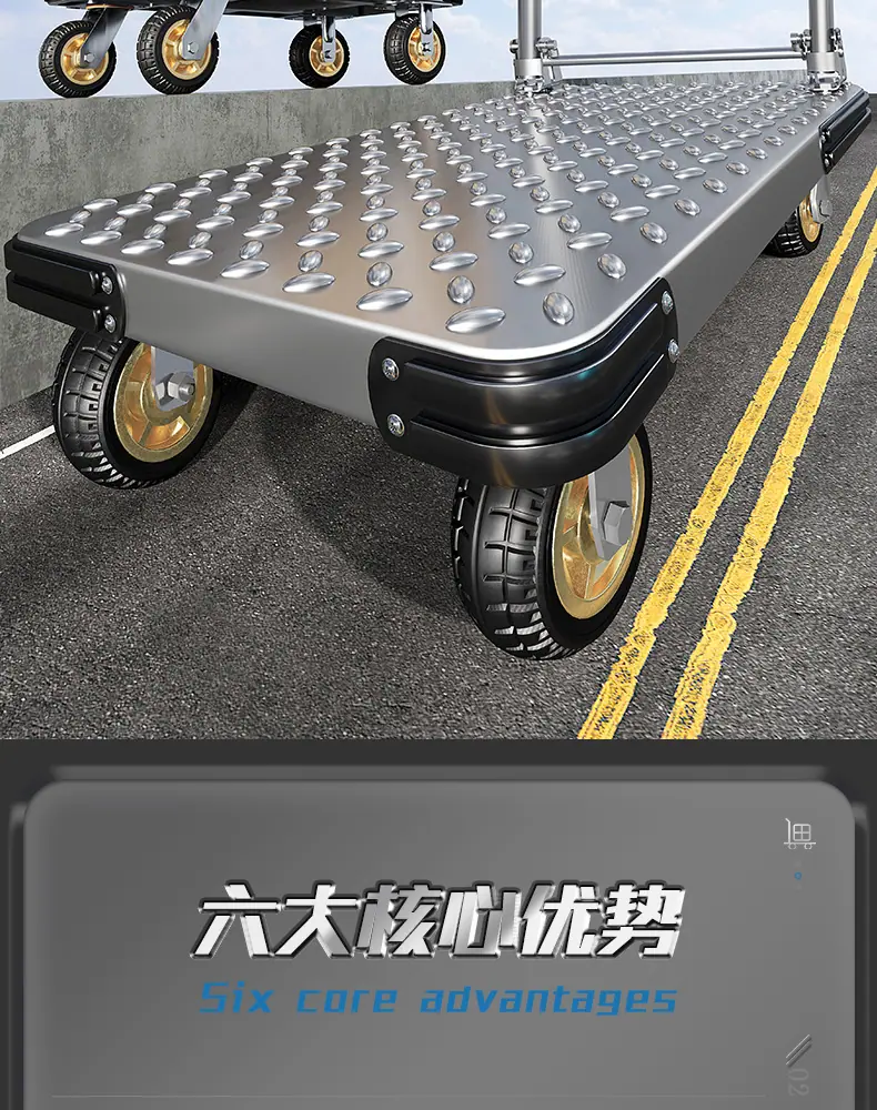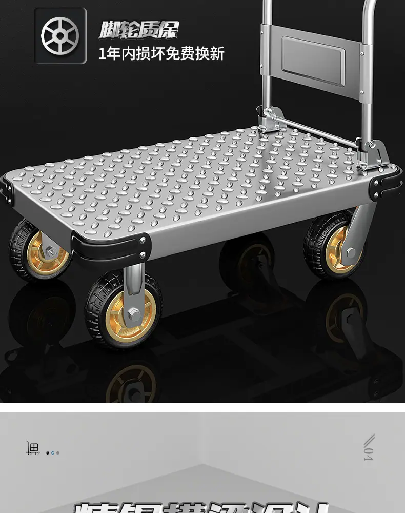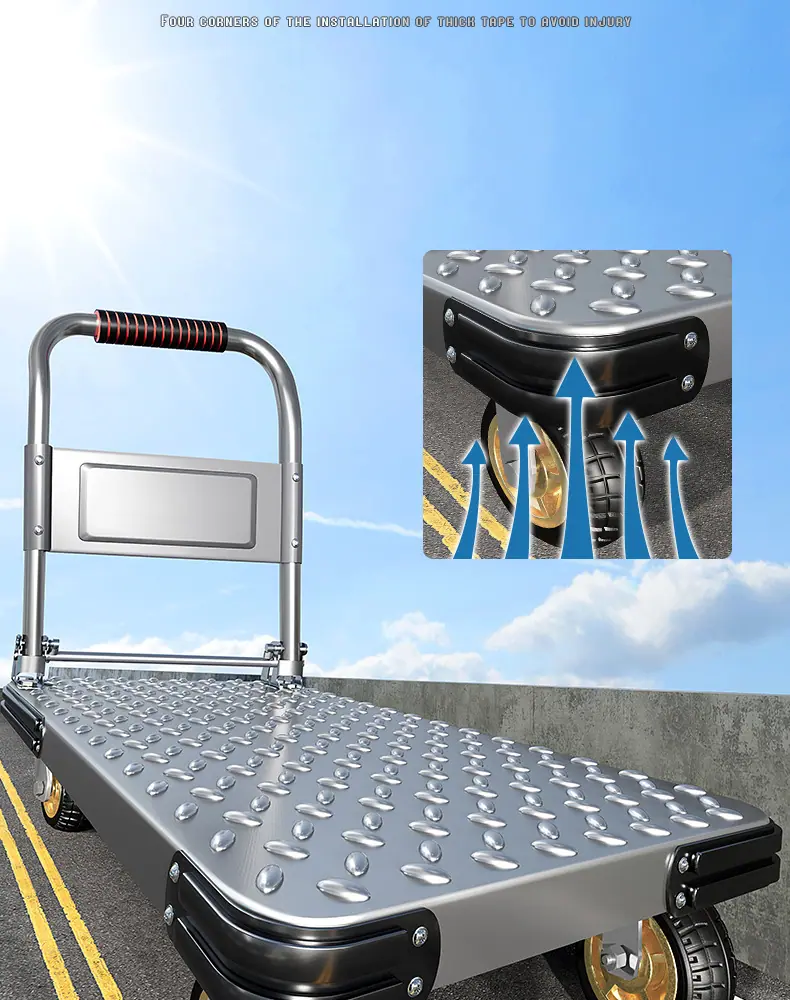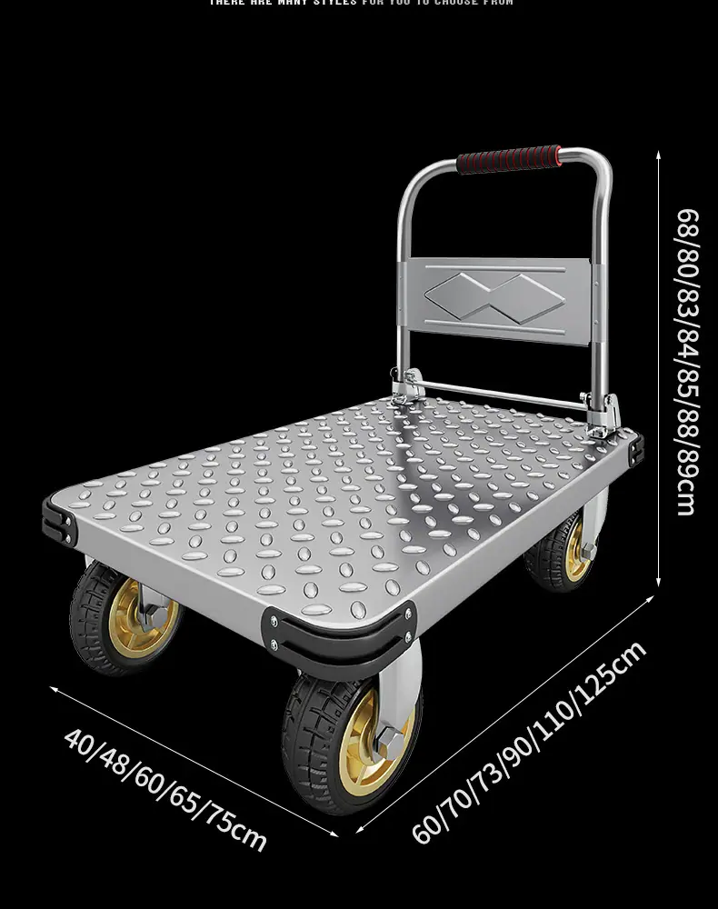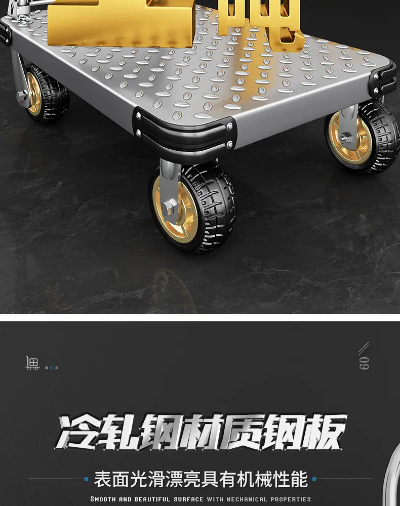 Extra thick steel plate❤73*48 [ 4inch tpr silent wheel + handlebar cover] 750kg