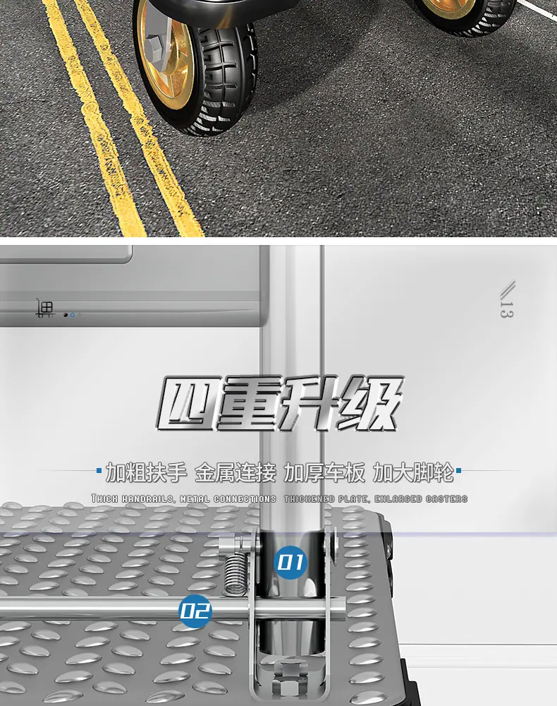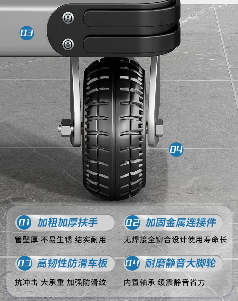 Extra thick steel plate❤70*45 [ 4inch silent wheel + handlebar cover] 500kg