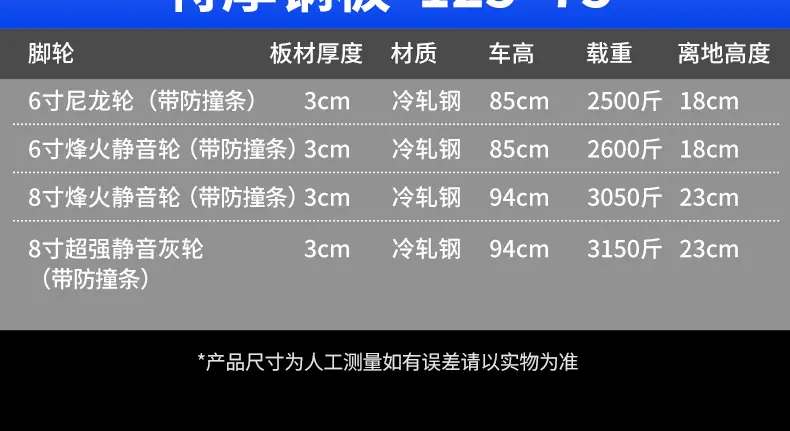 Extra thick steel plate❤125*75 extra large [ 8inch strong gray silent wheel + grip + protective ring] 1575kg