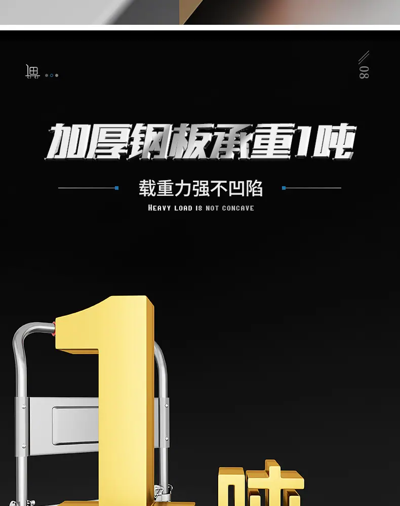 Extra thick black steel❤125*75 extra large [ 8inch strong gray silent wheel + handlebar cover] 1575kg
