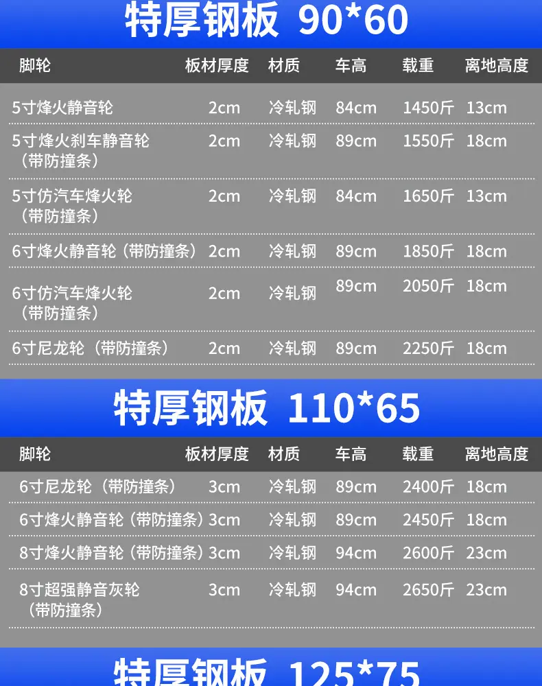 Extra thick steel plate❤90*60 heavy duty [ 5inch ultra-quiet hot wheels + grip + protective ring] 975kg