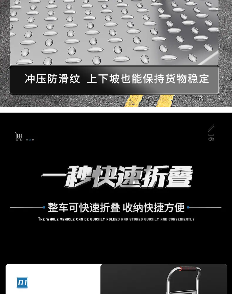 Extra thick black steel❤73*48 [ 4inch tpr silent wheel + handlebar cover] 750kg