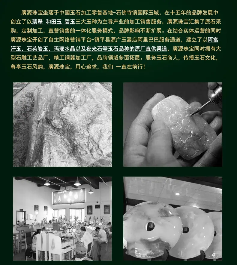 Los productos se suministran directamente desde nuestra fábrica y se controlan estrictamente desde la producción hasta el procesamiento para garantizar que cada jade sea una obra de arte en manos de nuestros clientes, con garantía de calidad. Contamos con claras ventajas en el suministro de productos, y les invitamos a comparar precios y calidades de productos de igual calidad. Hablamos con firmeza.
