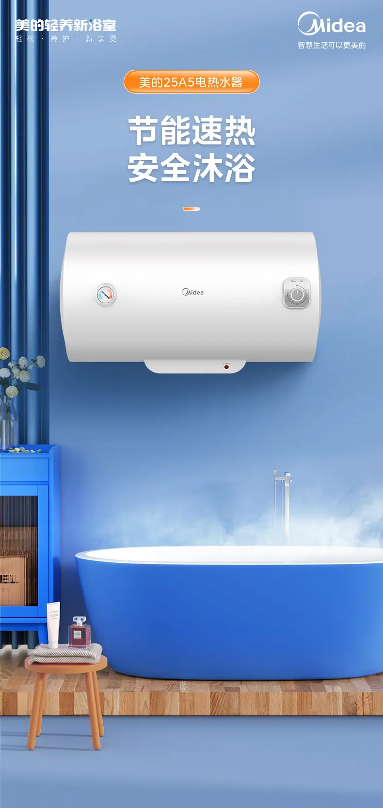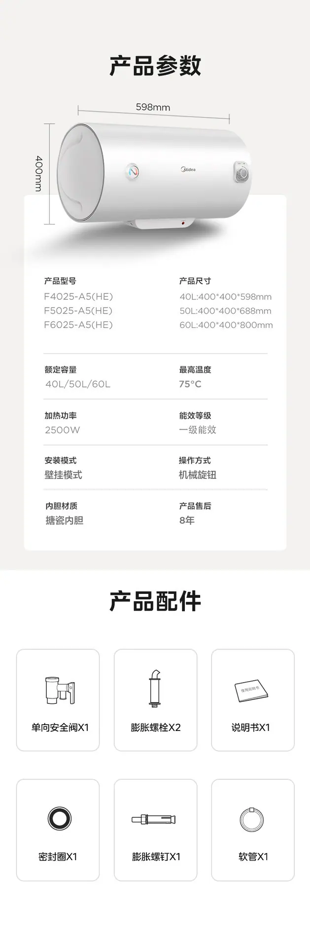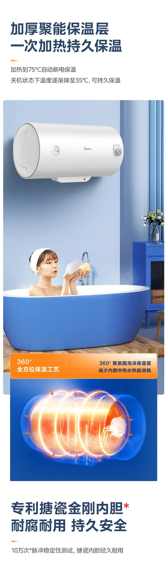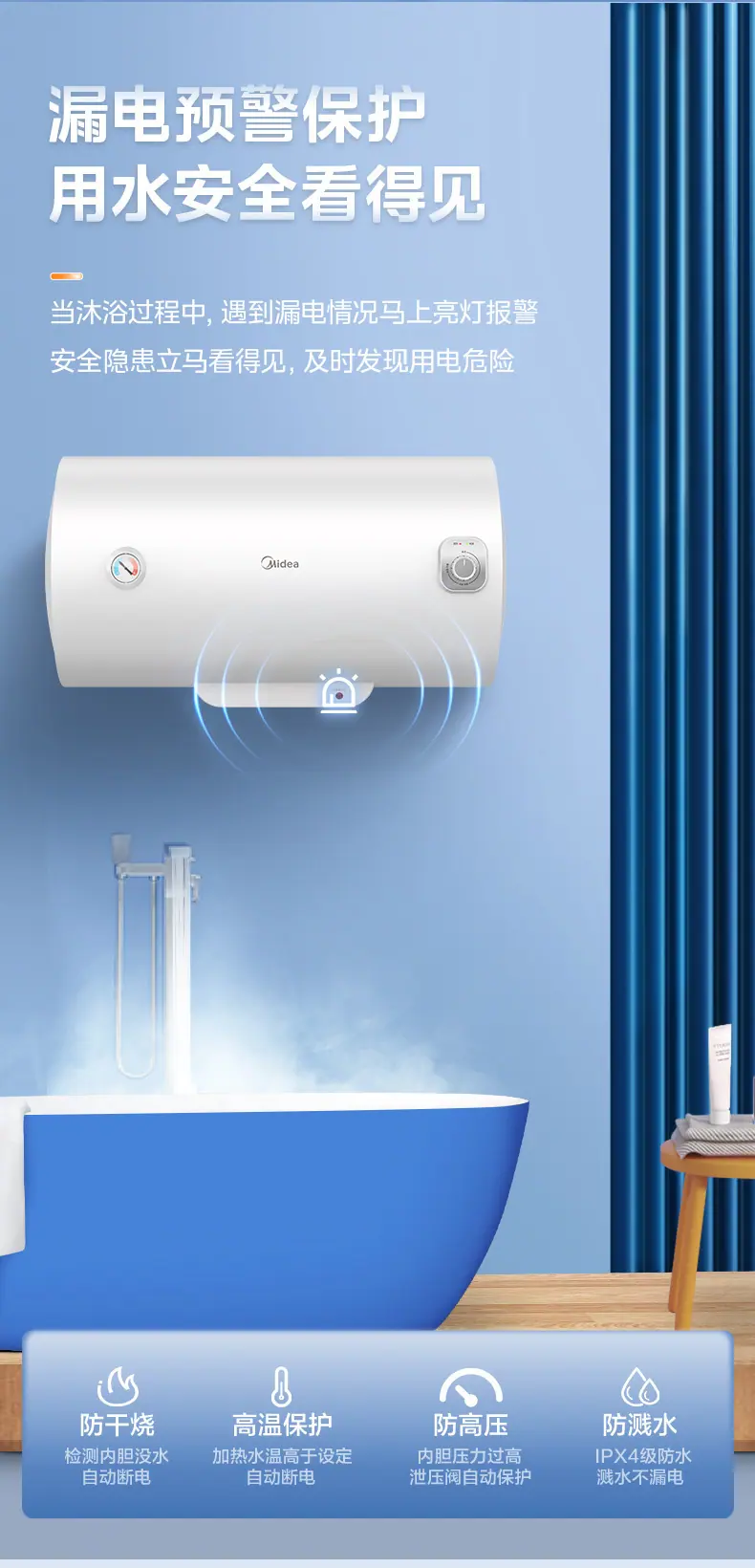 Calentador de agua eléctrico Midea tipo almacenamiento eficiencia energética de primera clase casa de alquiler F40/F50/F6025-A5(ÉL)
