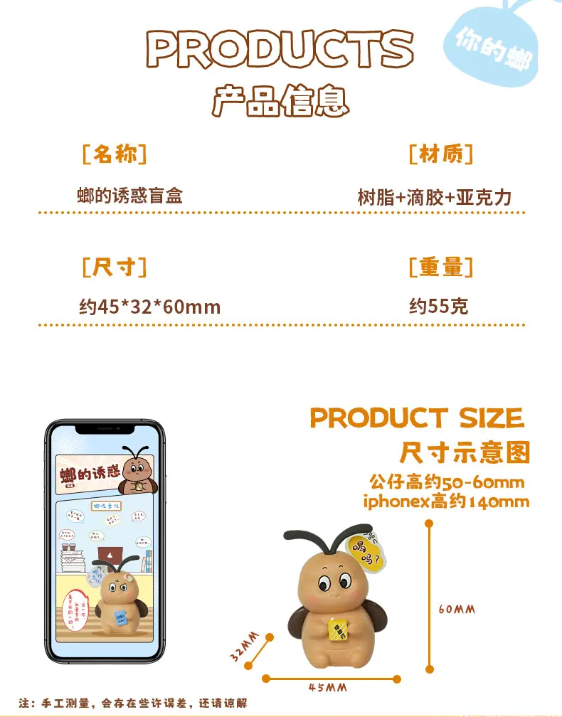 【Tamaño/Peso】Caja Pequeña: 7.8*6.5*9.2 Caja Final: 23.5*13.5*9.5cm Producto: 4.5*3.2*6cm Peso: aprox. 55g/pieza【Especificaciones de Empaque】108 piezas/caja 6 piezas/extremo 18 extremos/caja
