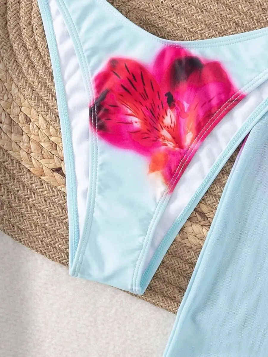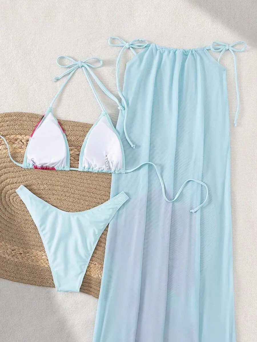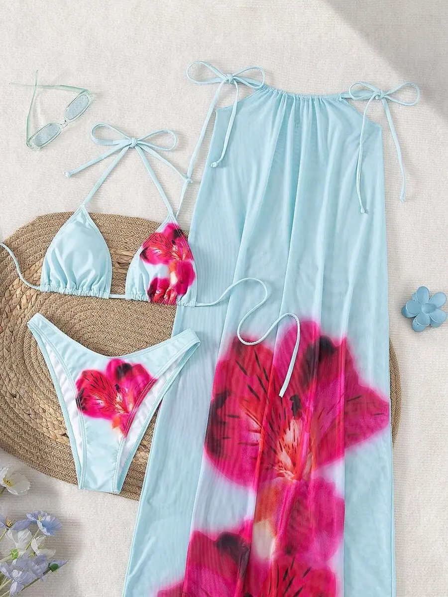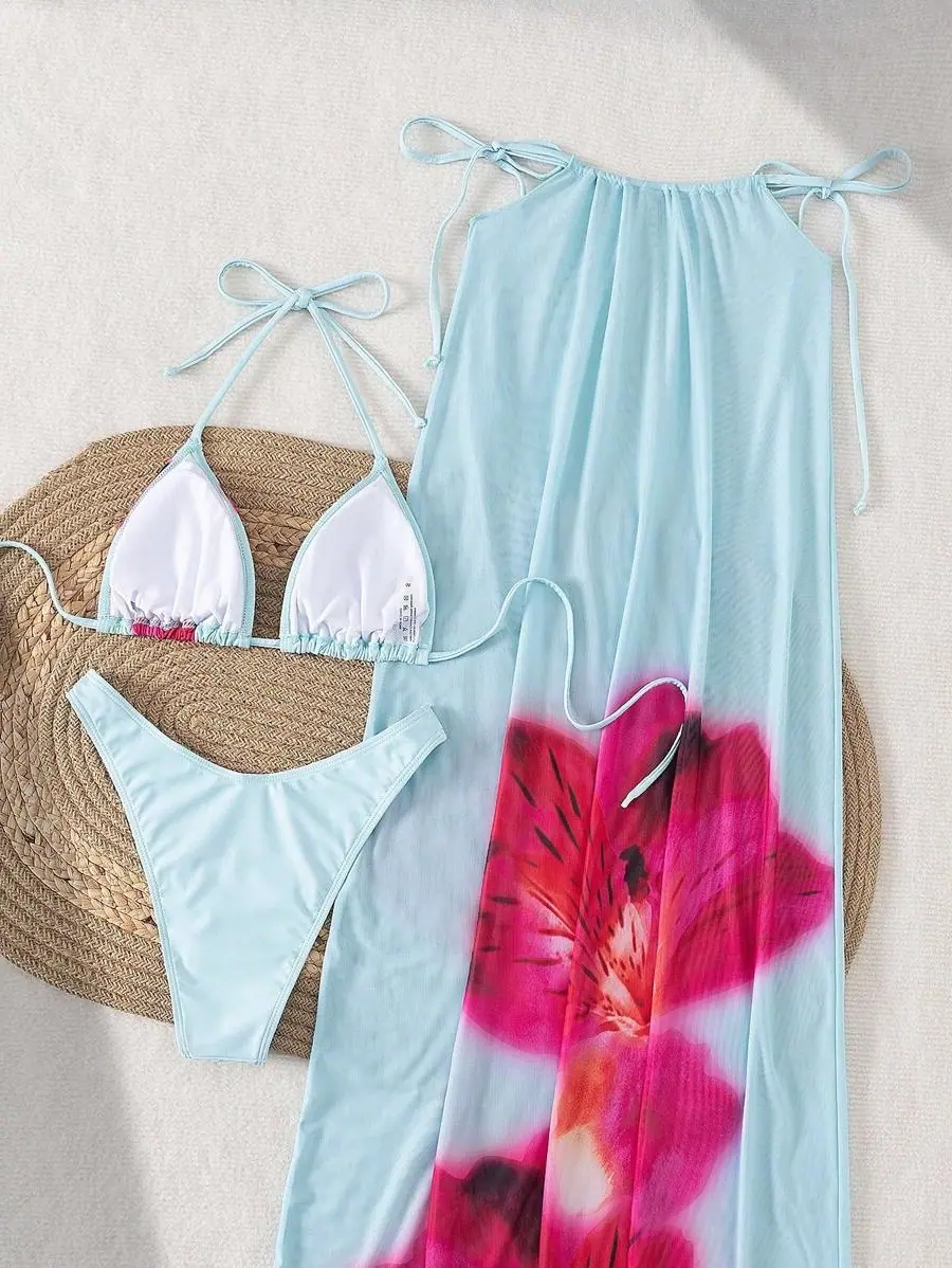 Nuevo Conjunto de Tirantes de Tres Piezas Estilo Estampado Bohemio Verano para Mujer Playa Casual Traje de Baño Bikini