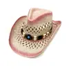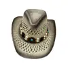 Sombrero de Vaquero Retro Nuevo Sombrero de Paja Calado Protección Solar Sombrilla Estilo Étnico Simple Retro Vaquero Playa Sombrero de Paja De Alta Gama