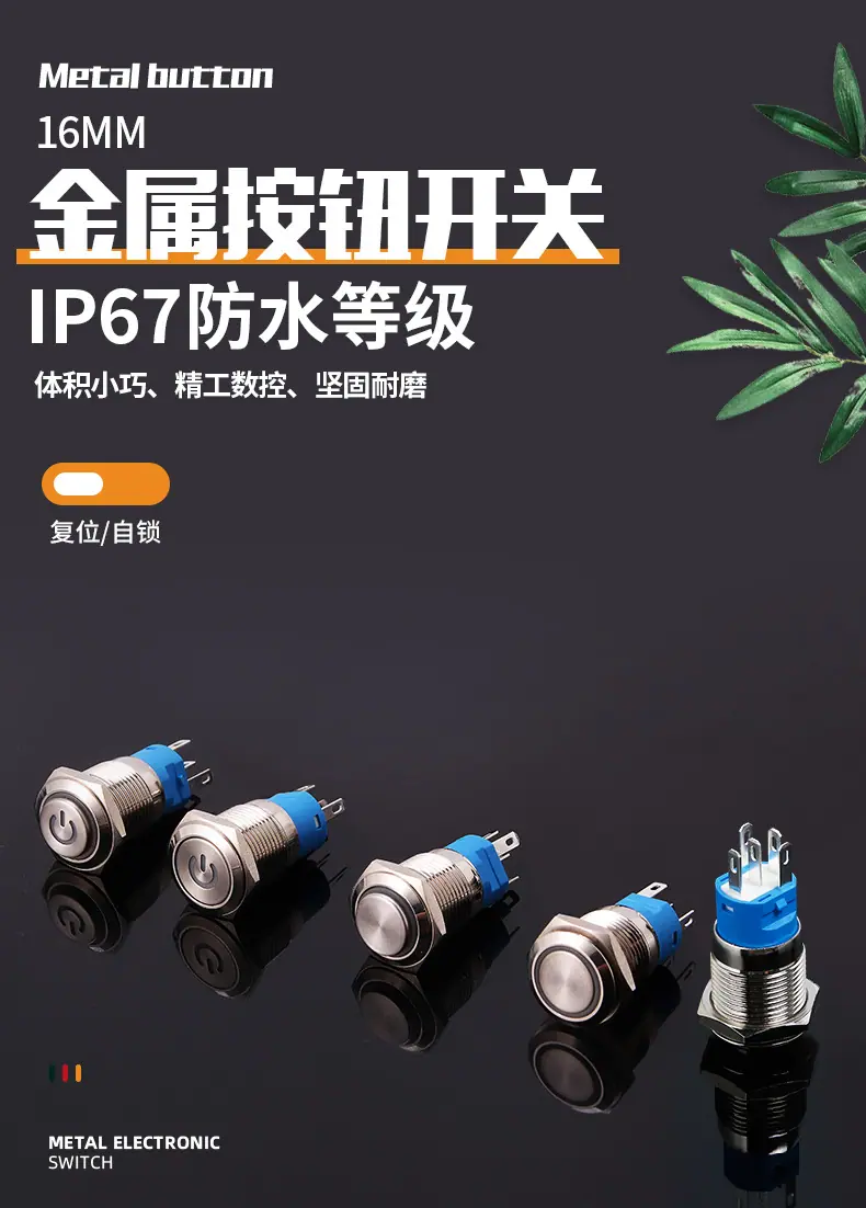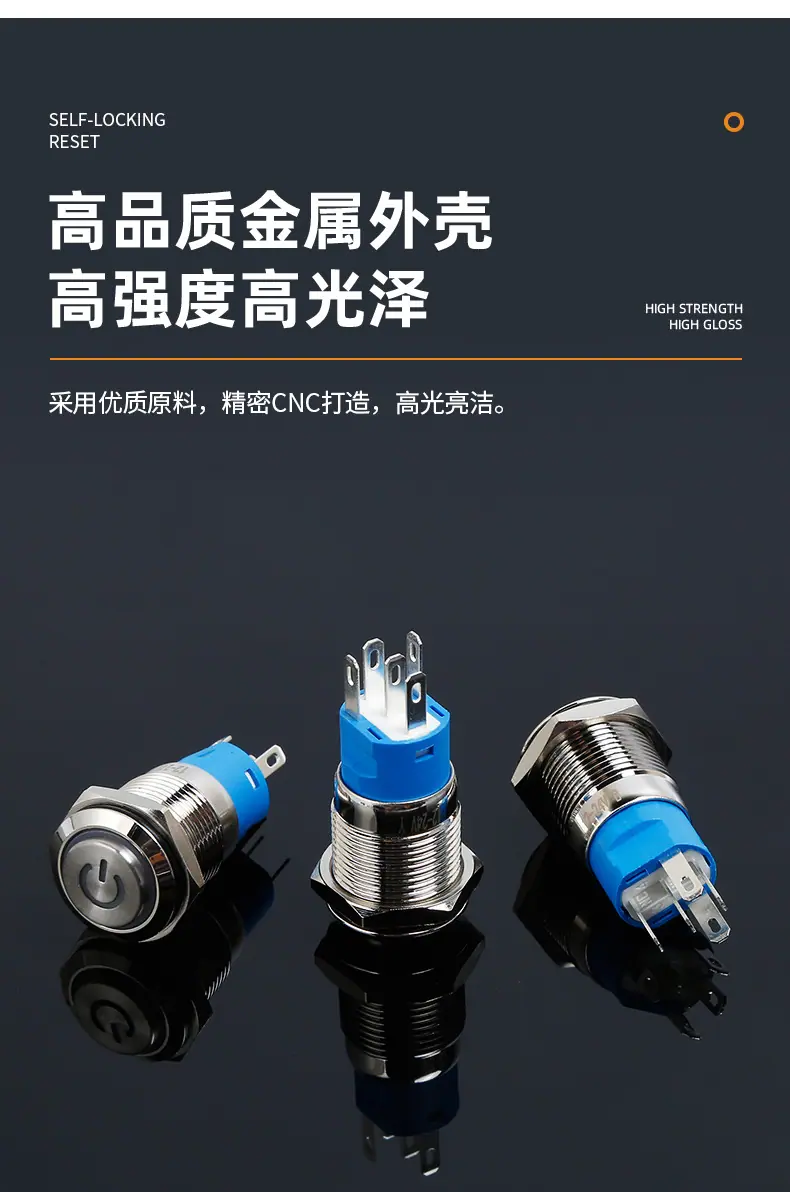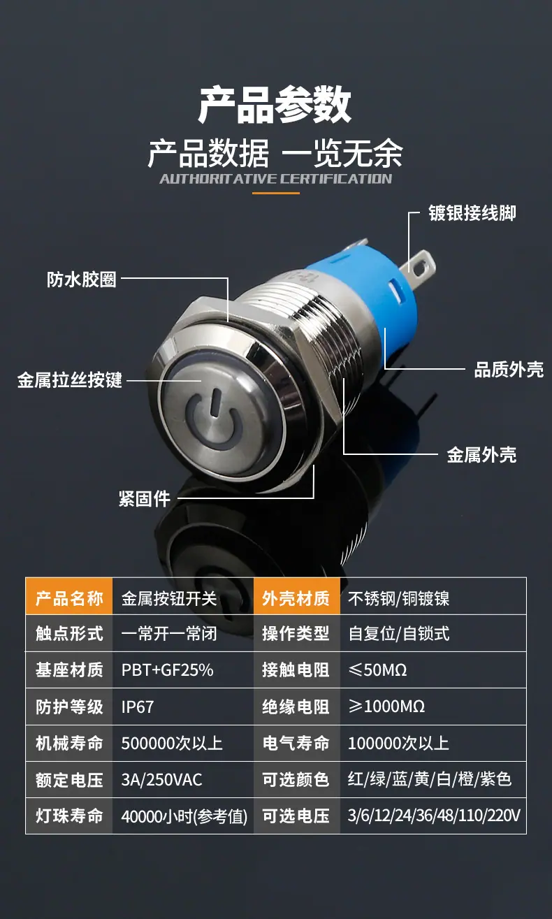 Interruptor de botón metálico de 16 mm con luz autoblocante auto compuesto impermeable anillo de potencia estándar modificación de coche 24V 220V