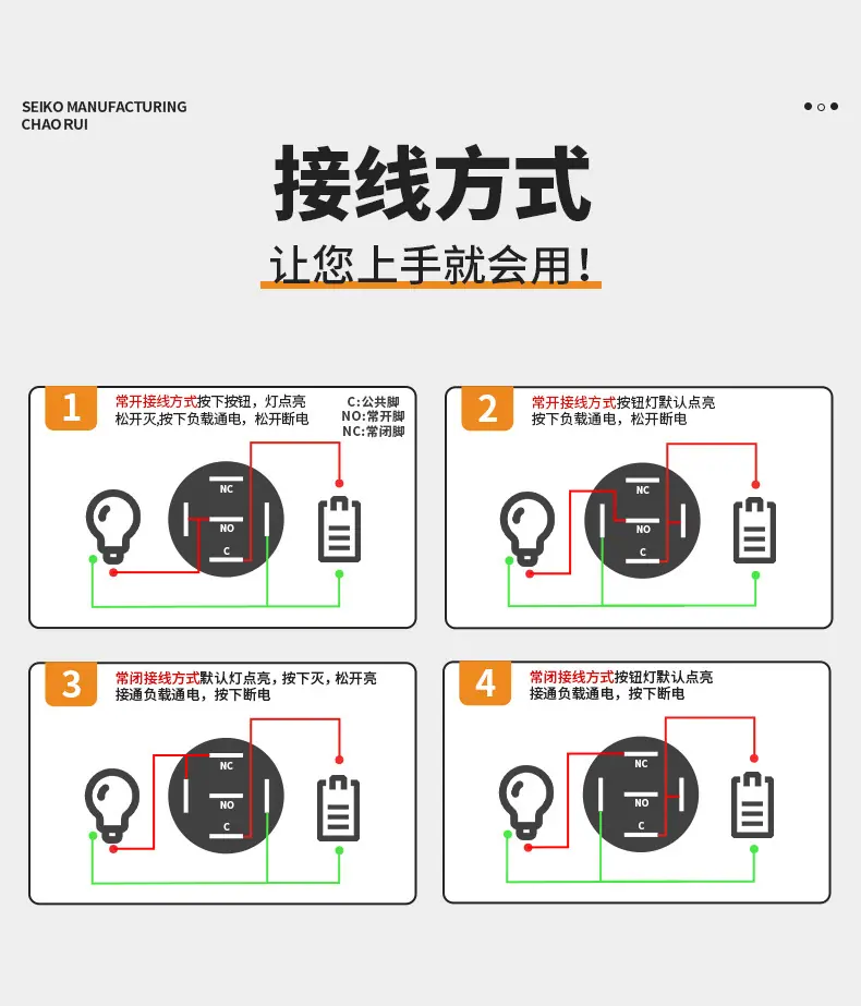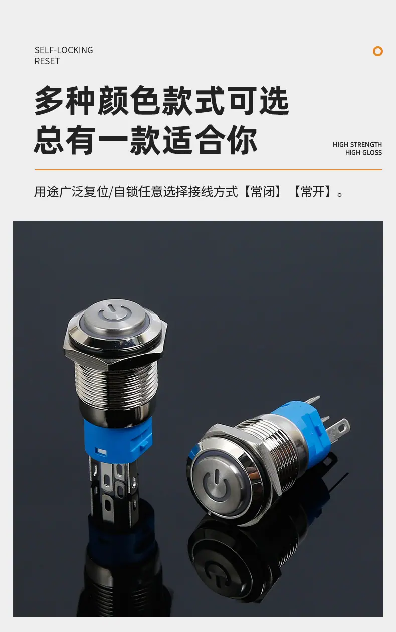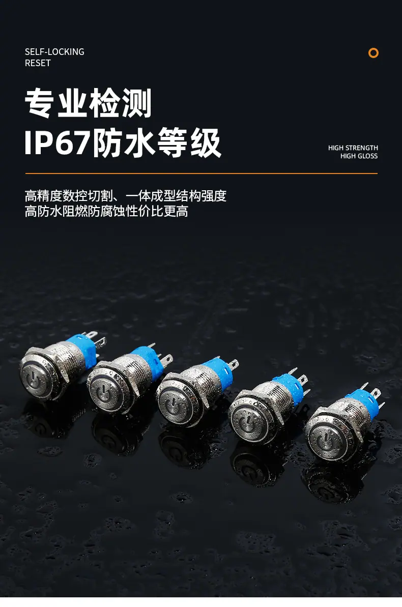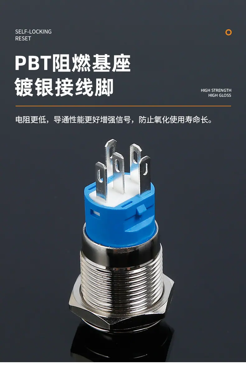 Interruptor de botón metálico de 16 mm con luz autoblocante auto compuesto impermeable anillo de potencia estándar modificación de coche 24V 220V