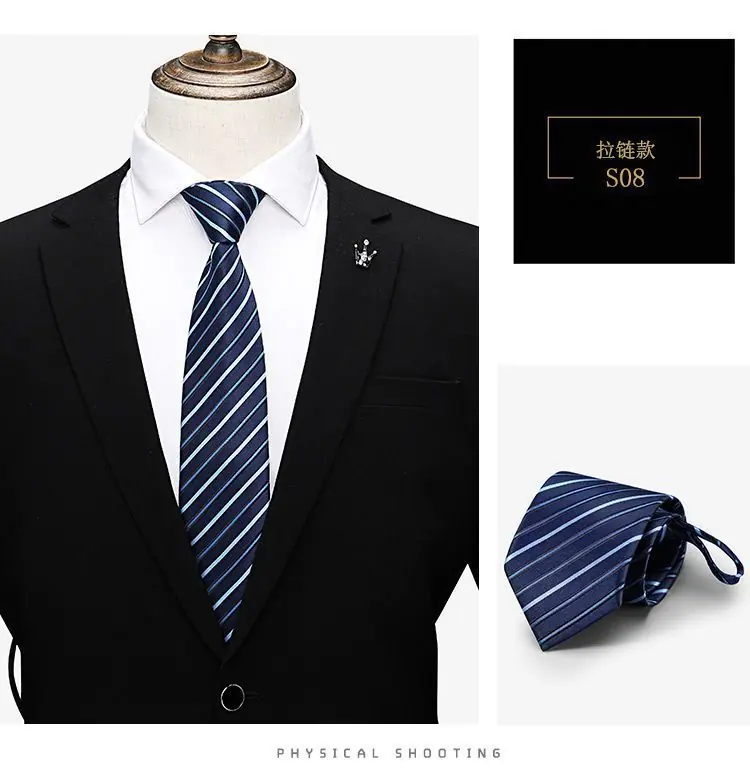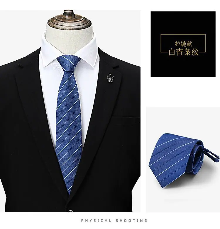 (no need to punch - zipper) 8cm hot selling blue tie, (no need to punch - zipper) 8cm hot selling black tie, (...