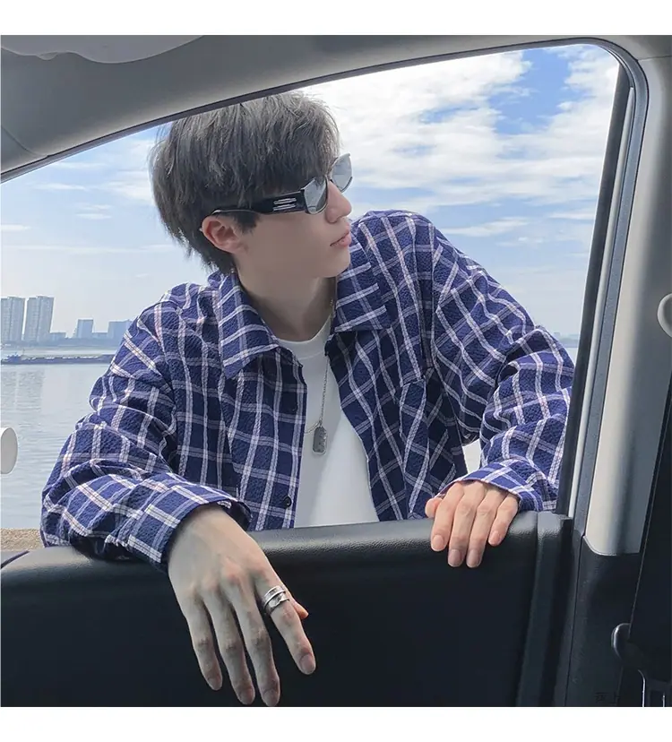 Compra Camisa de Cuadros de Solapa Texturizada de Manga Larga para Hombre Otoño Nuevo Estilo Americano Lazy Retro Casual Chaqueta de Camisa Trendy al por mayor en Joom.pro