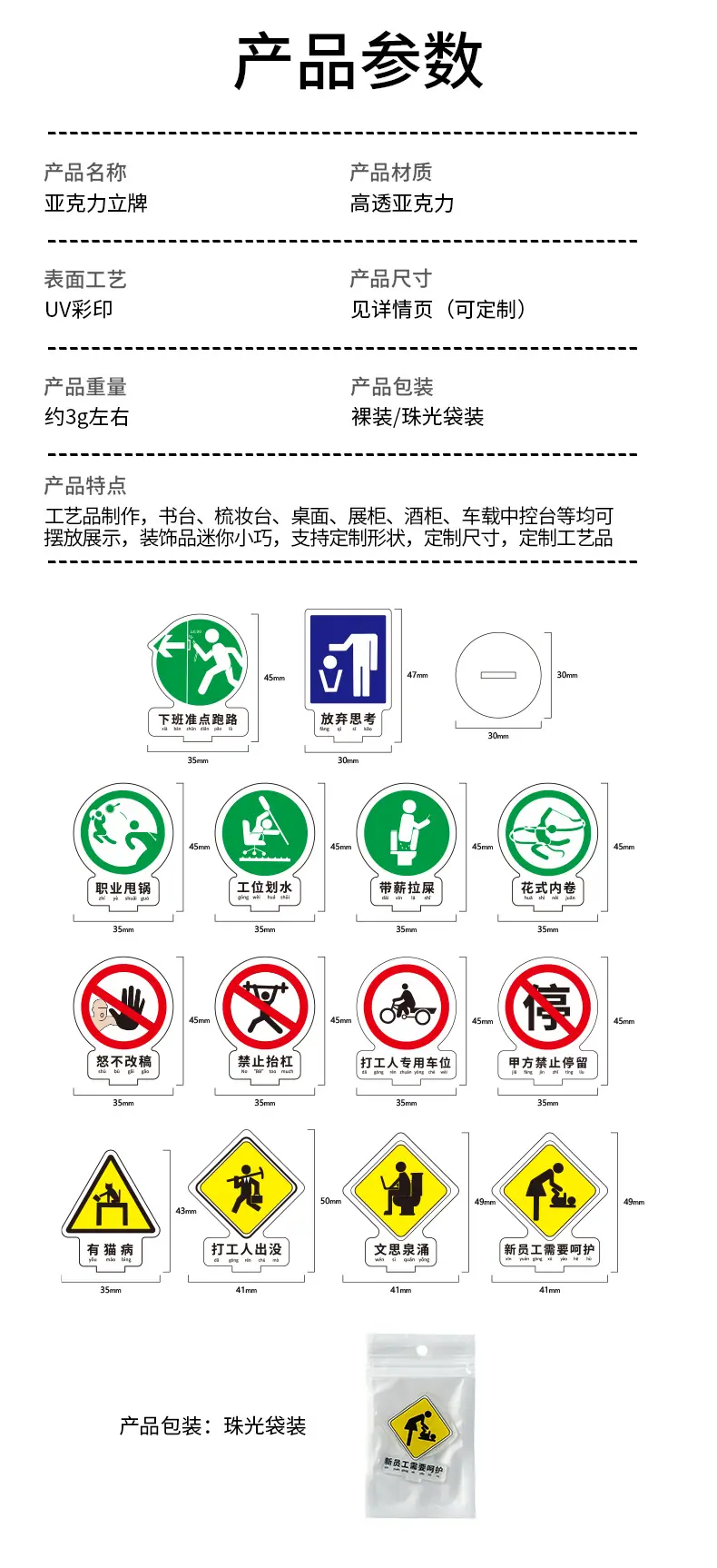 Tamaño del producto: 40*50MM;(Soporte de forma personalizada, contenido personalizado, logotipo personalizado);