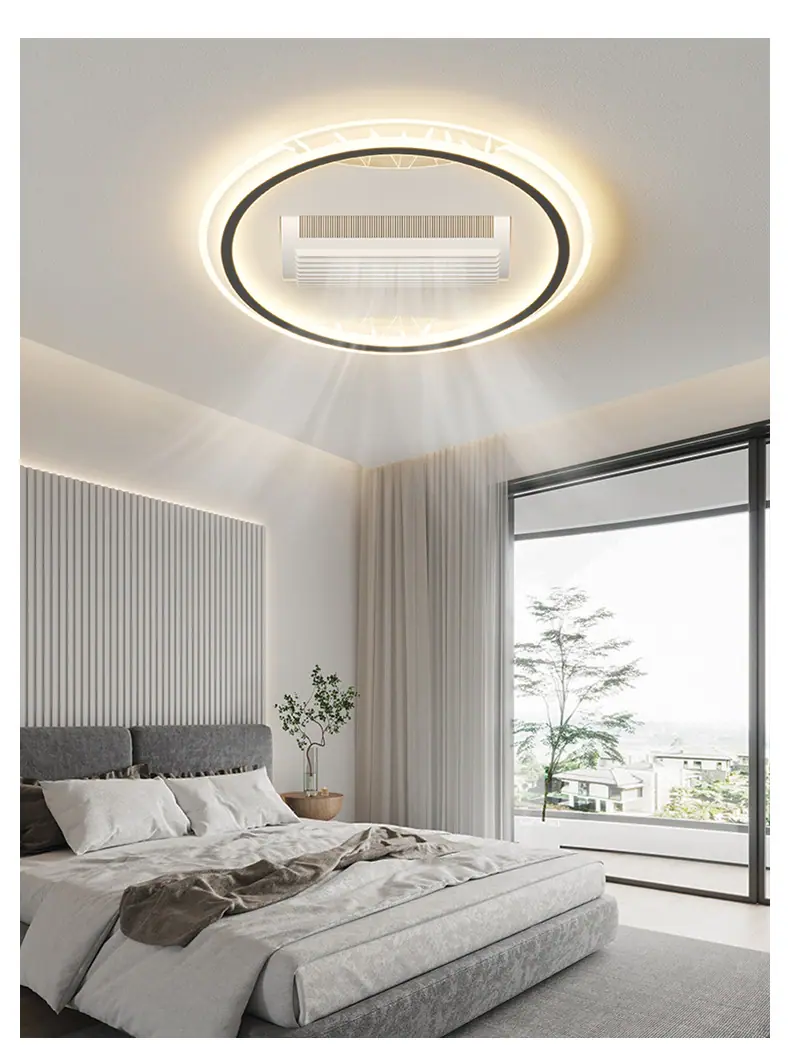 [black + white] bedroom - round 50cm [6-speed variable frequency bladeless fan light] [offline voice version]