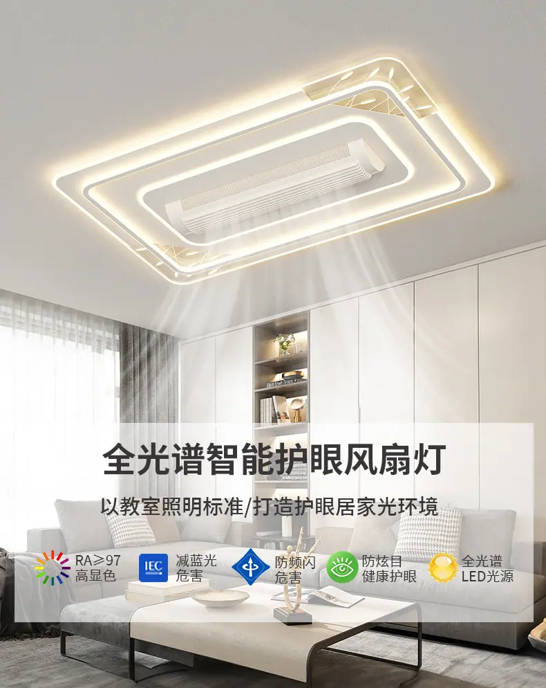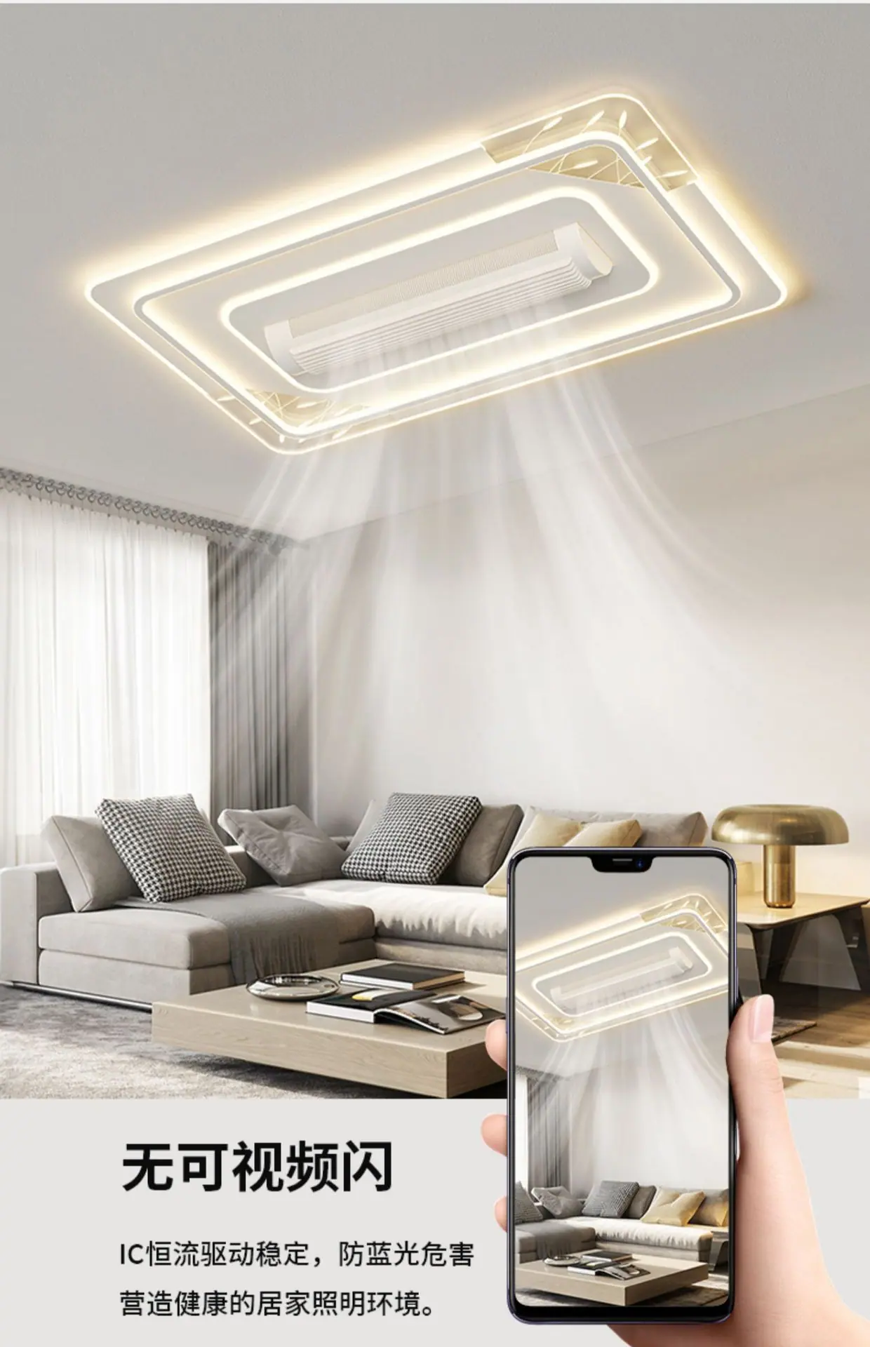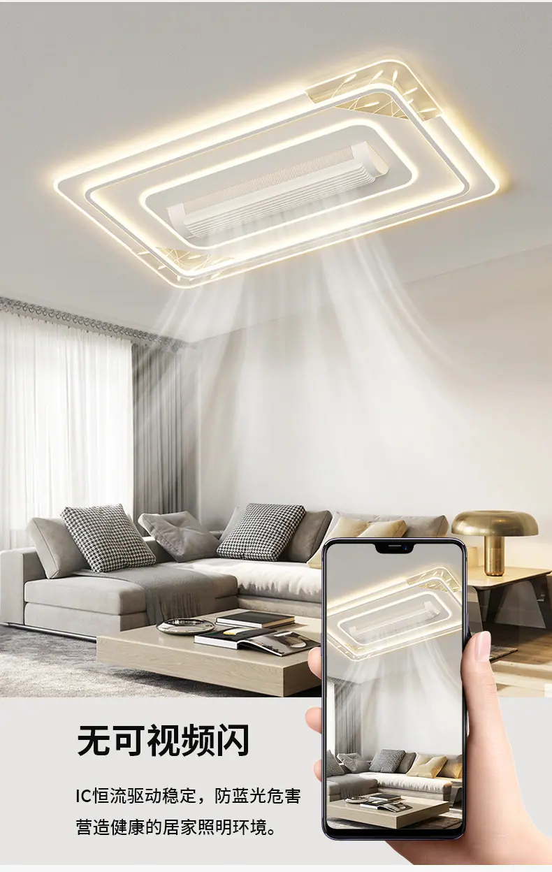 Lámpara de Ventilador para Sala de Estar Modelo Nuevo 2025 Moderno Simple Inteligente Toda la Casa Habitación Dormitorio Lámpara de Ventilador sin Aspas Lámpara de Techo