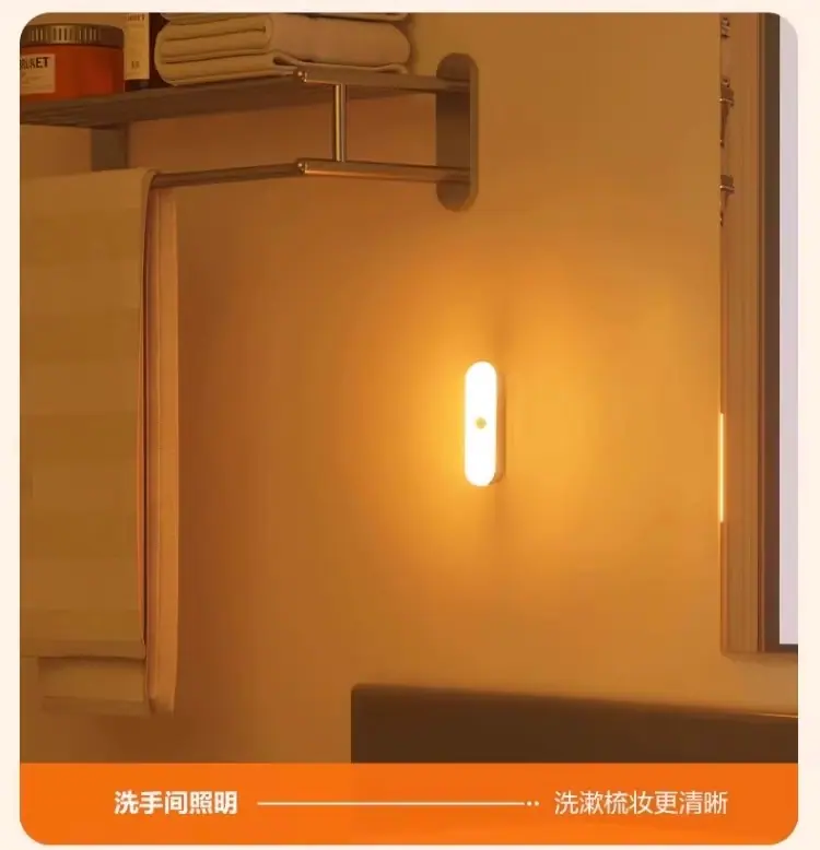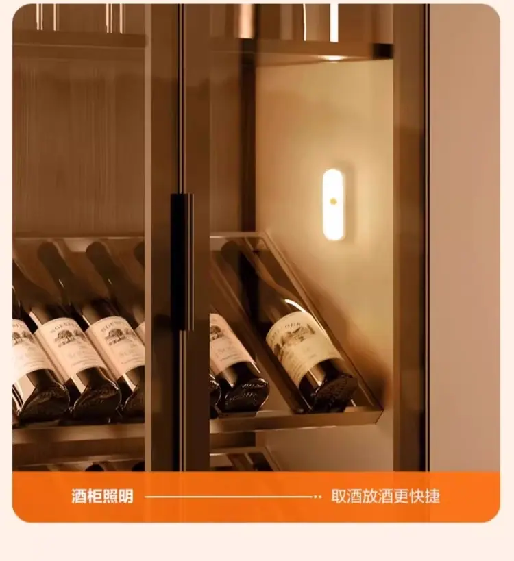 Lámpara Sensor de Cuerpo Humano Dormitorio Mesita de Noche Led Recargable Doble Propósito Gabinete Armario Vinoteca Sensor Magnético Luz Nocturna Venta al por Mayor