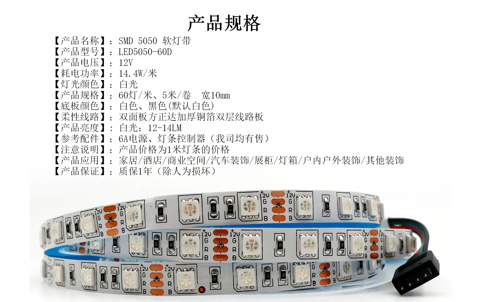 Compra Luz Suave Led 5050 de 12V con 60 Lámparas RGB por Metro Placa F Panel Doble Parche Colorido Luz Flexible Línea de Luz Ambiental al por mayor en Joom.pro