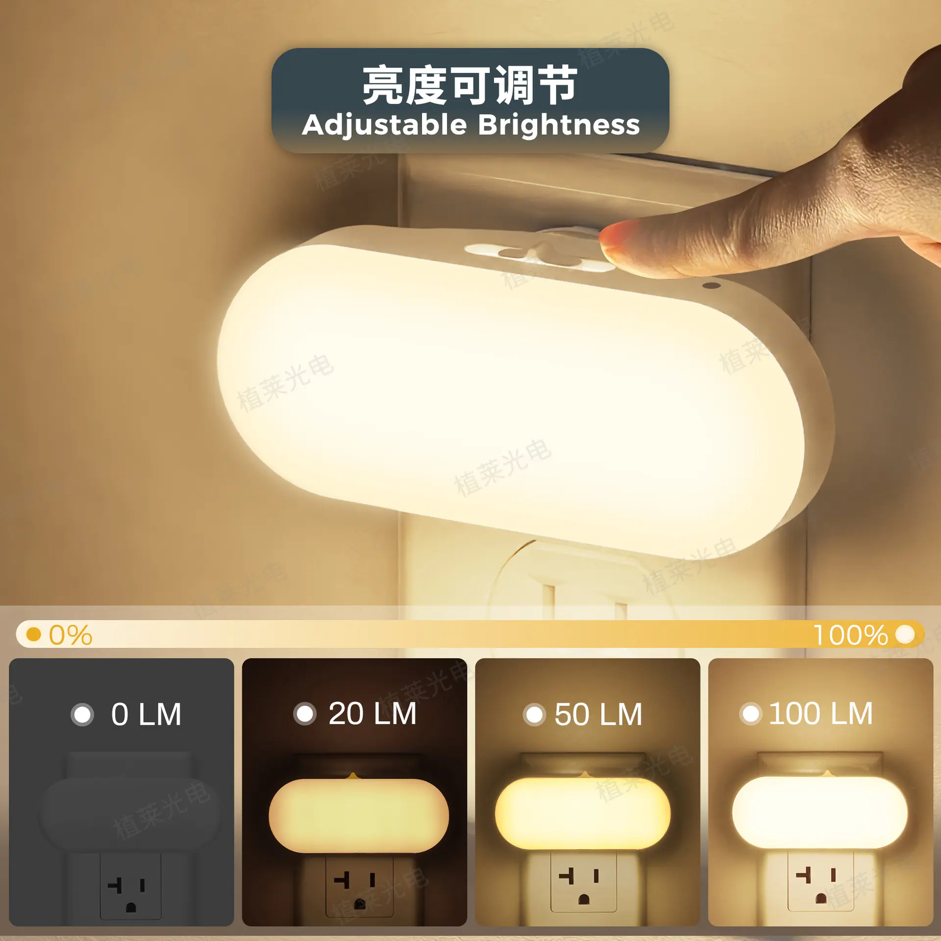 Control de Luz Luz Nocturna LED Nl007 Casual Regulable Luz Suave Protección Ocular Noche Mesita de Noche Luz con Sensor