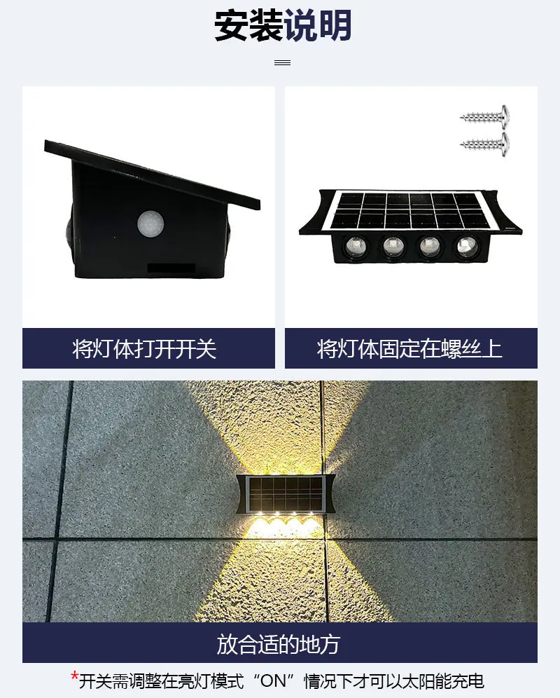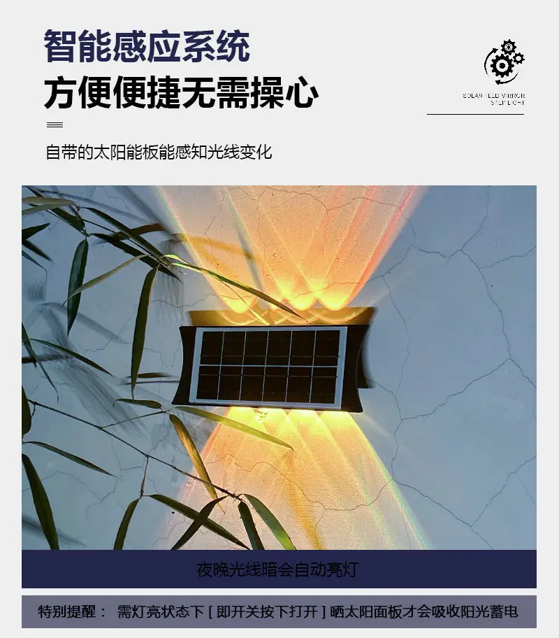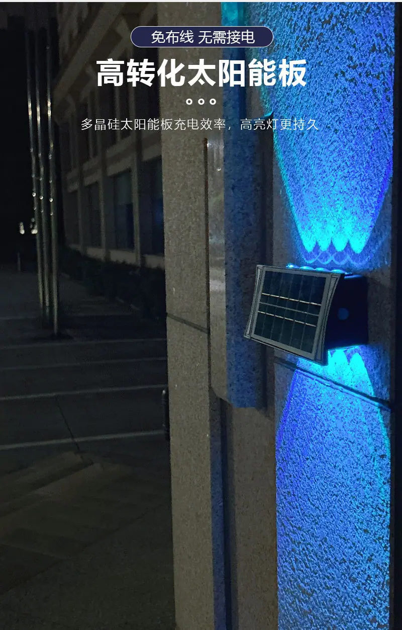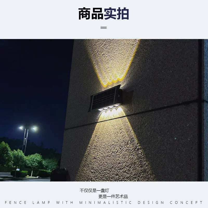 Lámpara de Pared Solar Patio Jardín Lámpara de Paisaje Balcón Exterior Impermeable Lámpara Decorativa Ambiente Iluminación Arriba y Abajo Lámpara Lavaparedes