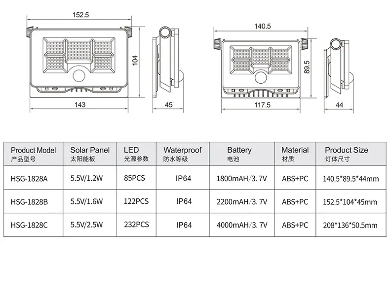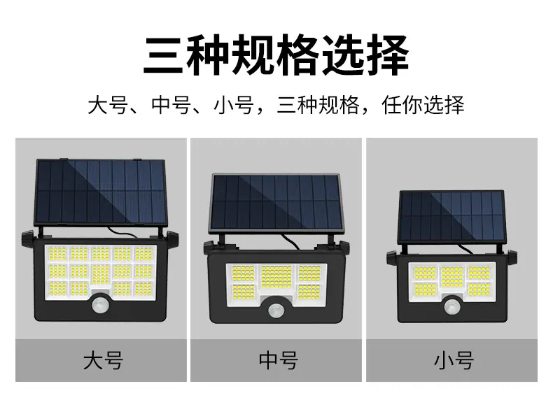 Small (solar panel 5.5V/1.2W), Medium (Solar Panel 5.5V/1.6W), Large size (solar panel 5.5V/2.5W)