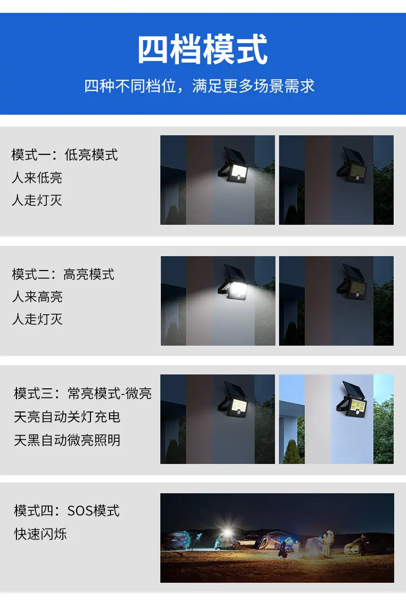 Luz LED Solar para Patio Exterior Transfronteriza Iluminación Exterior por Inducción Carga USB Luz Solar de Pared Plegable