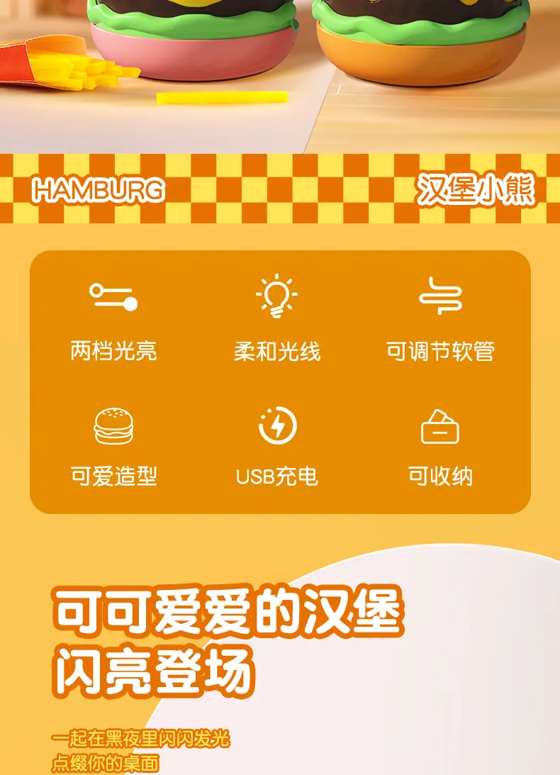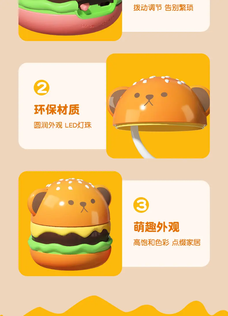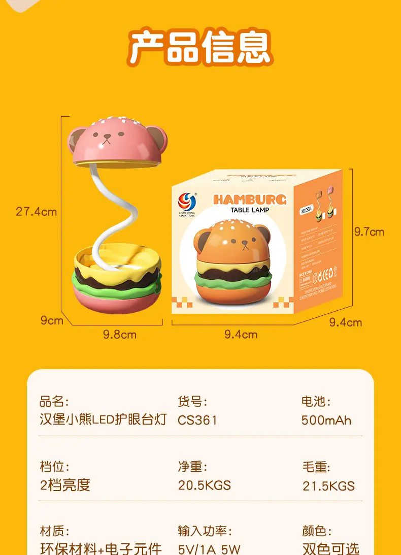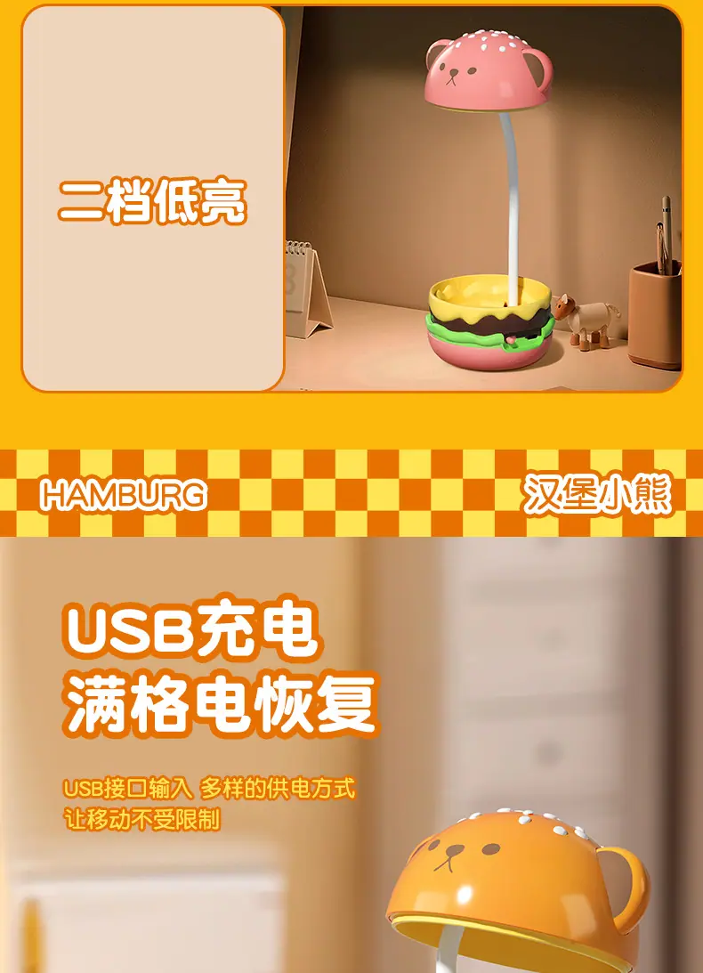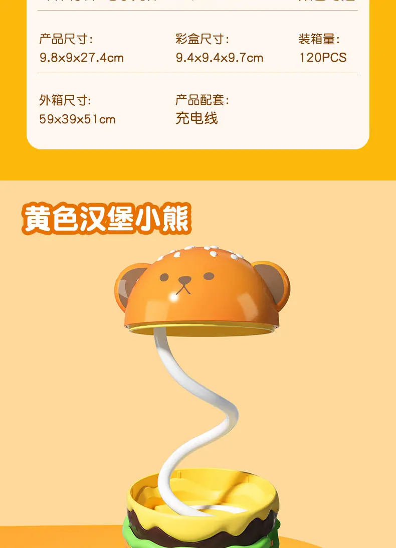 【Nombre del producto】: Lámpara de escritorio LED protectora para los ojos de oso hamburguesa