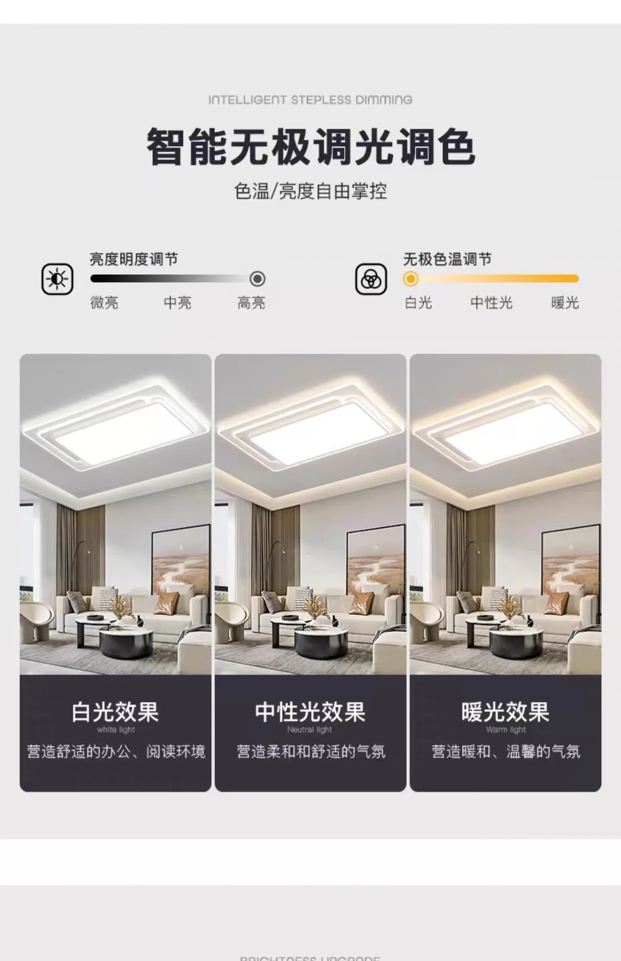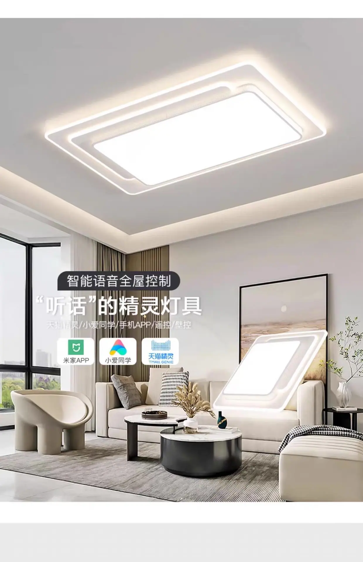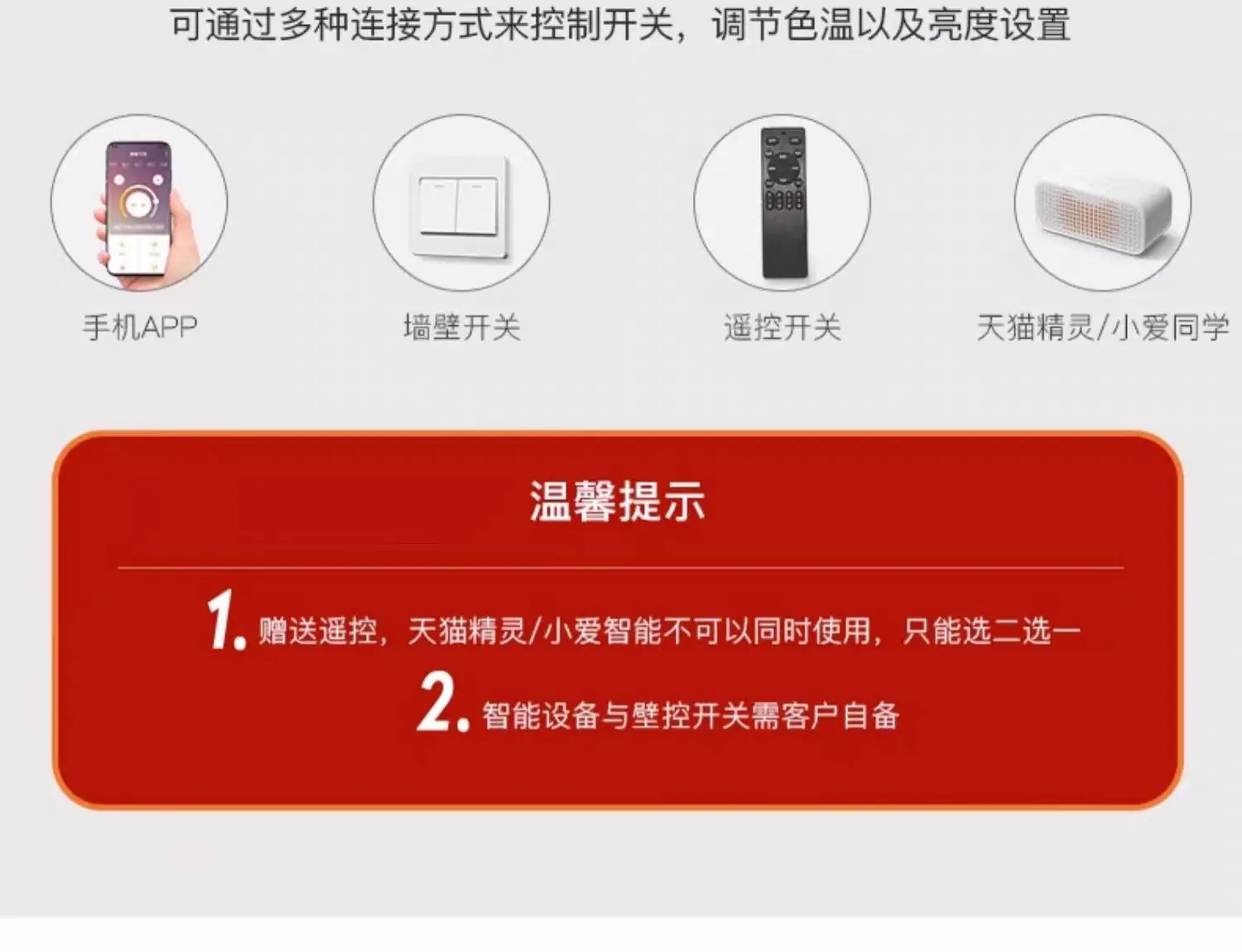 Three color dimming, Stepless dimming + remote control, Tmall Elf+Remote Control, Xiaoai classmates + remote control