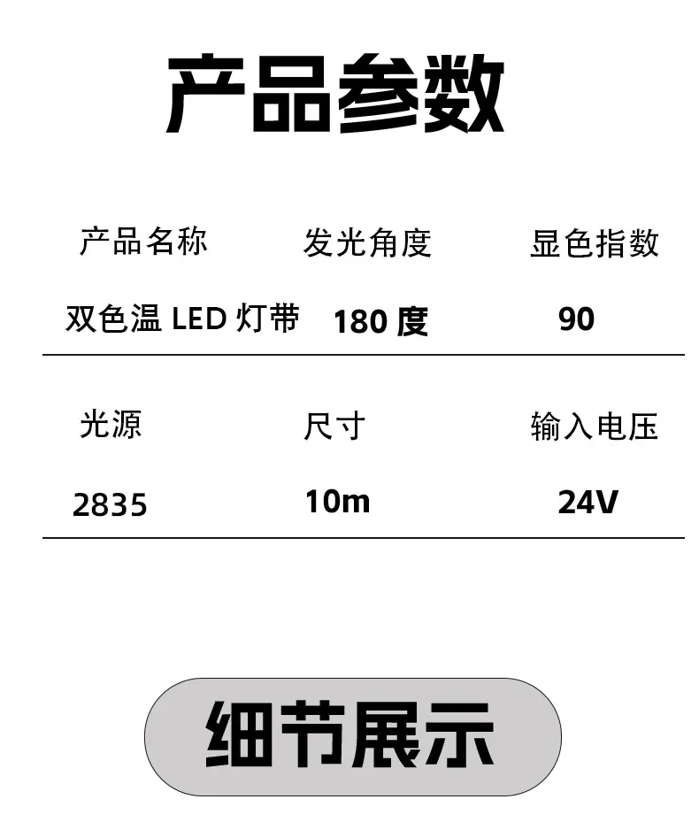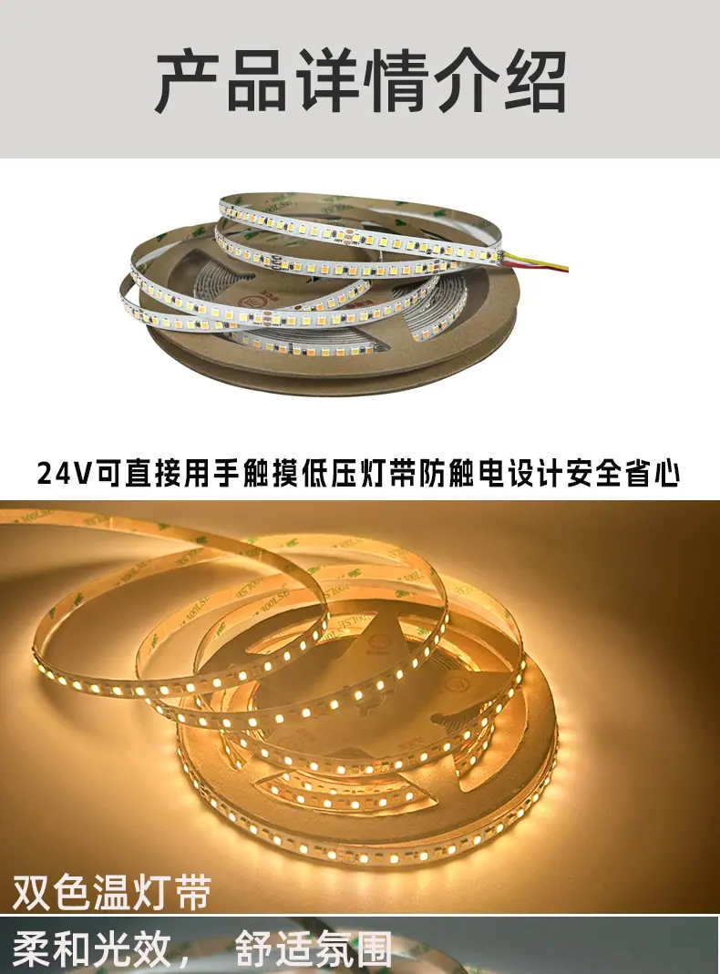 24V dual color temperature SMD light strip 5 meters [8mm wide Ra97 color rendering index], 24V dual color temp...