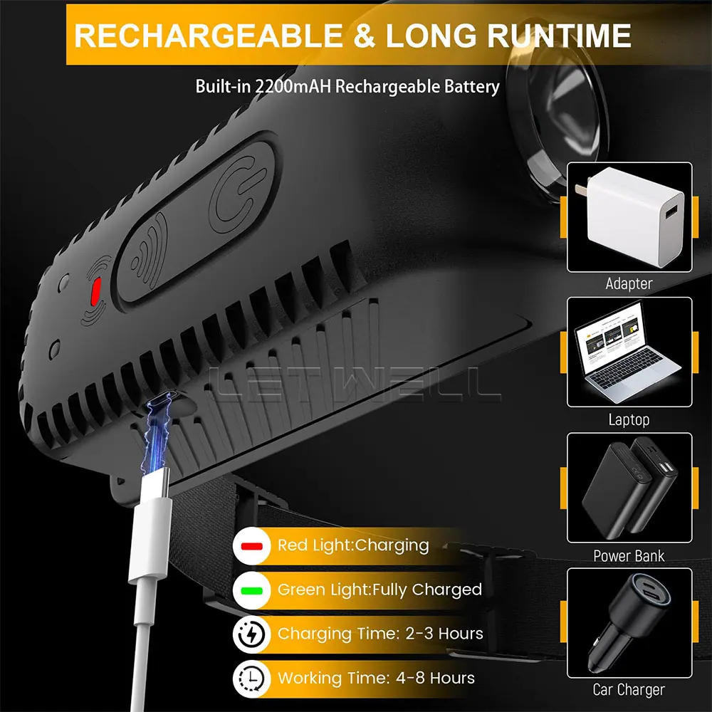 Compra Faro Faro montado en la cabeza luz fuerte recargable faro para pesca nocturna pesca dedicada superbrillante ultraligero lámpara de inducción larga duración de batería al por mayor en Joom.pro