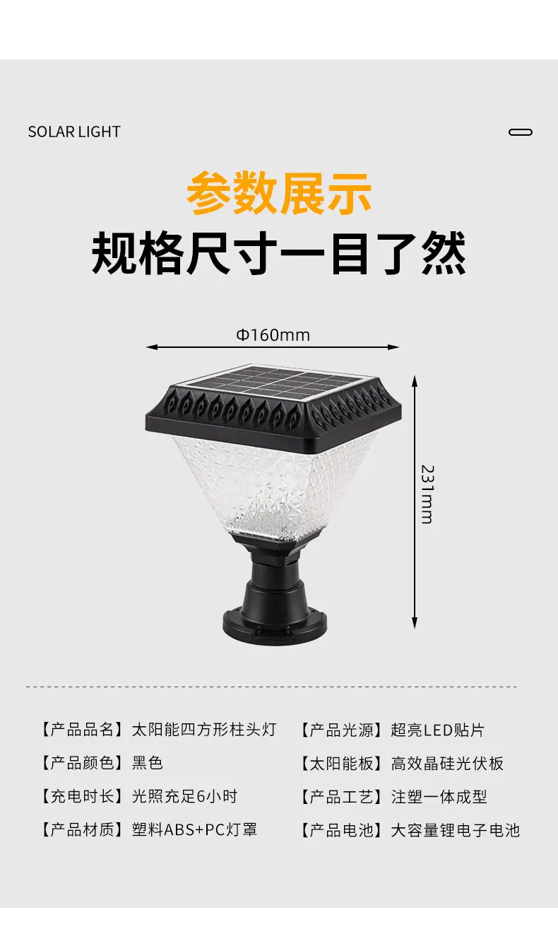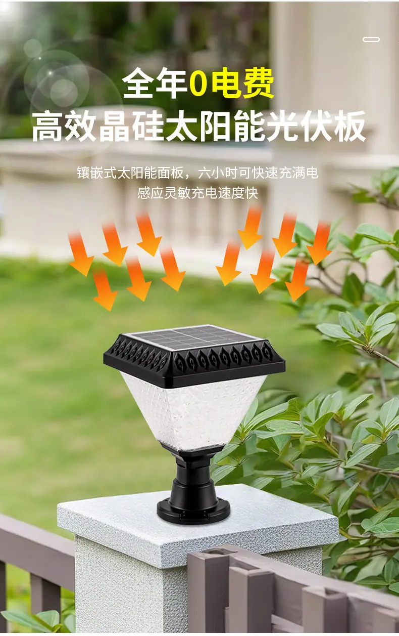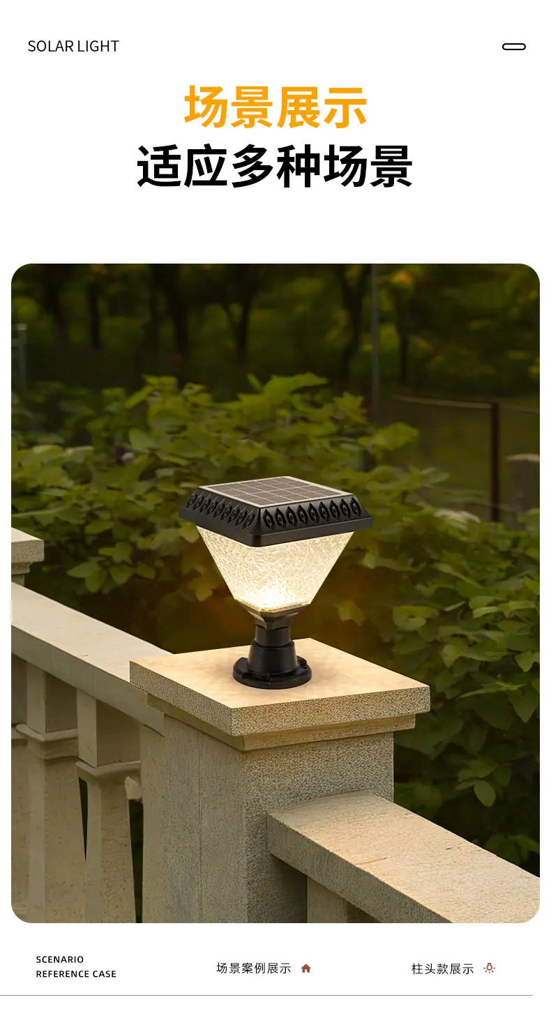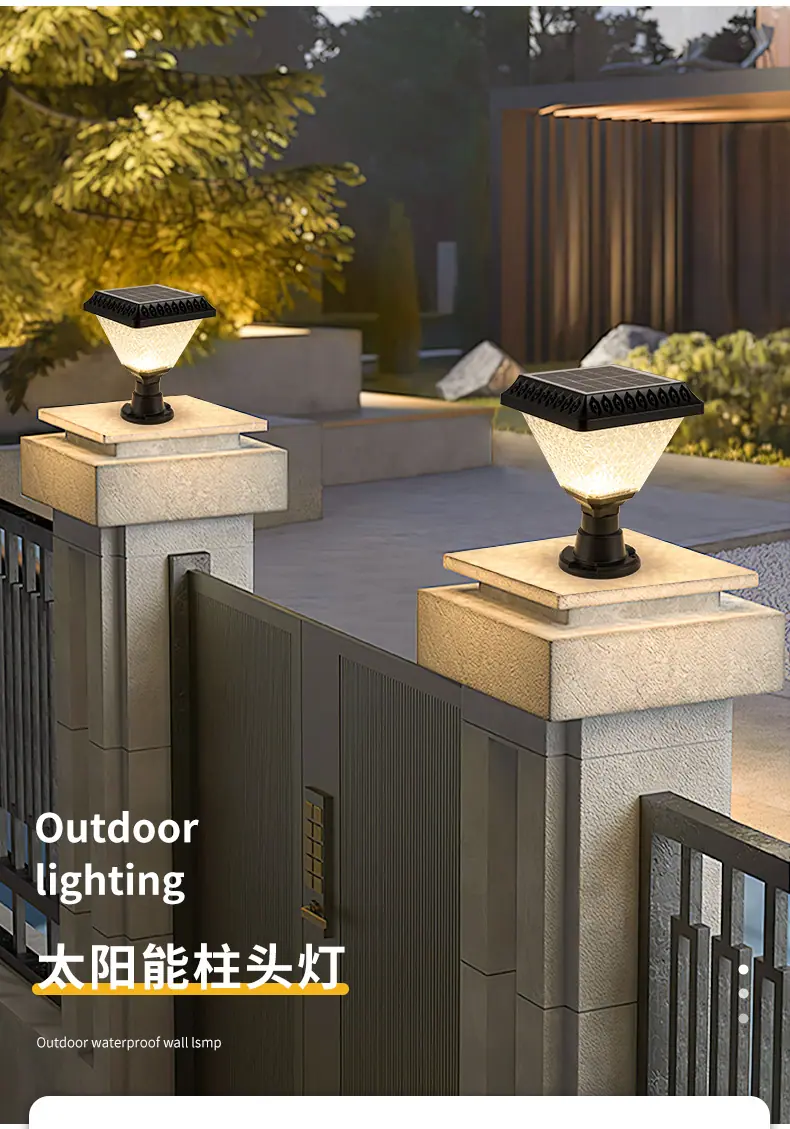 Luz Solar de Poste para Exterior de Venta Caliente Transfronteriza, Luz Decorativa de Ambiente para Tapa de Poste de Jardín y Valla, Luz Solar para Patio al Aire Libre