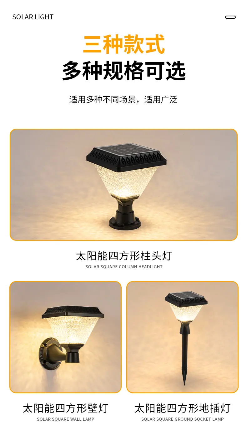 Solar square column headlight, Solar square wall light, Solar powered square floor lamps