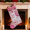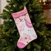 Calcetín de Navidad de Unicornio Rosa Feliz Navidad Decoración de Estrella Bordada Calcetín Colgante para Árbol de Chimenea Regalo de Vacaciones para Niños SY#SH008