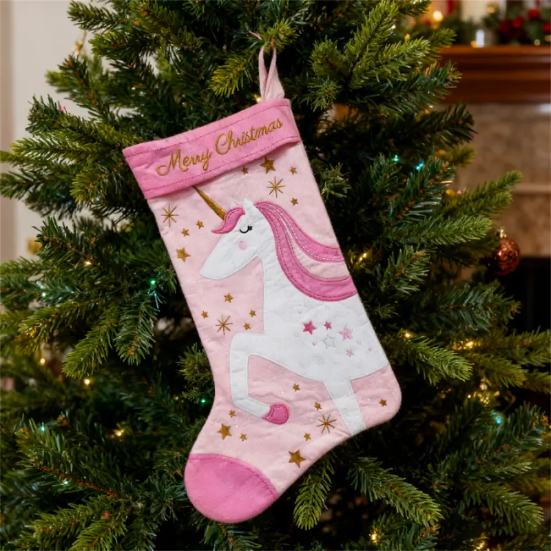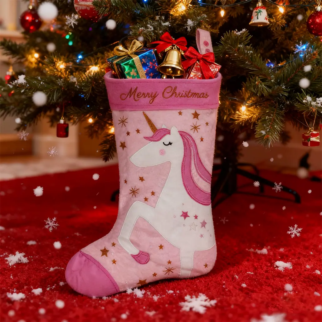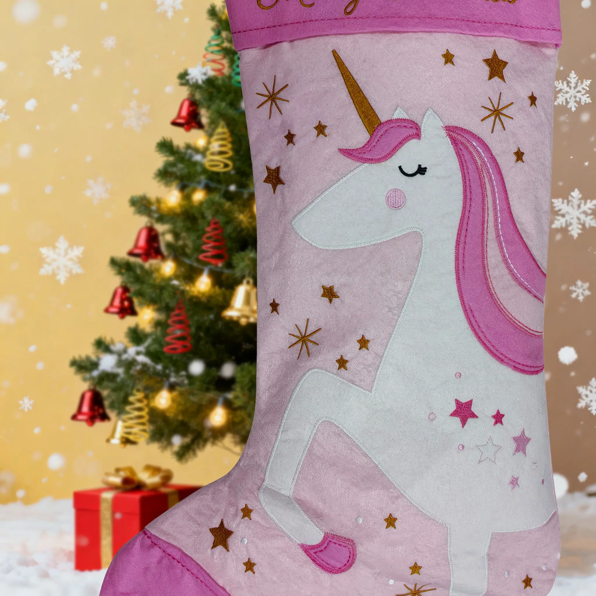 Compra Calcetín de Navidad de Unicornio Rosa Feliz Navidad Decoración de Estrella Bordada Calcetín Colgante para Árbol de Chimenea Regalo de Vacaciones para Niños SY#SH008 al por mayor en Joom.pro