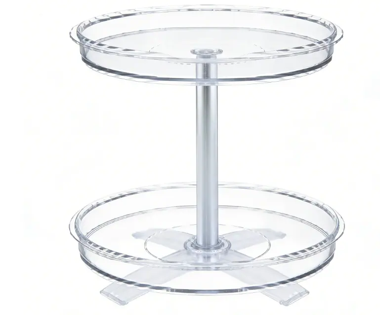 Este es un estante de almacenamiento redondo con secciones superior e inferior seleccionables independientemente, hecho de material PET 100%. La base cuenta con cuatro pies robustos para un soporte confiable, y su diseño giratorio le permite acceder fácilmente a los artículos desde cualquier ángulo. Ya sea para un rincón de café en El Salvador o una encimera de baño en Río de Janeiro, sirve como un compañero de almacenamiento confiable.