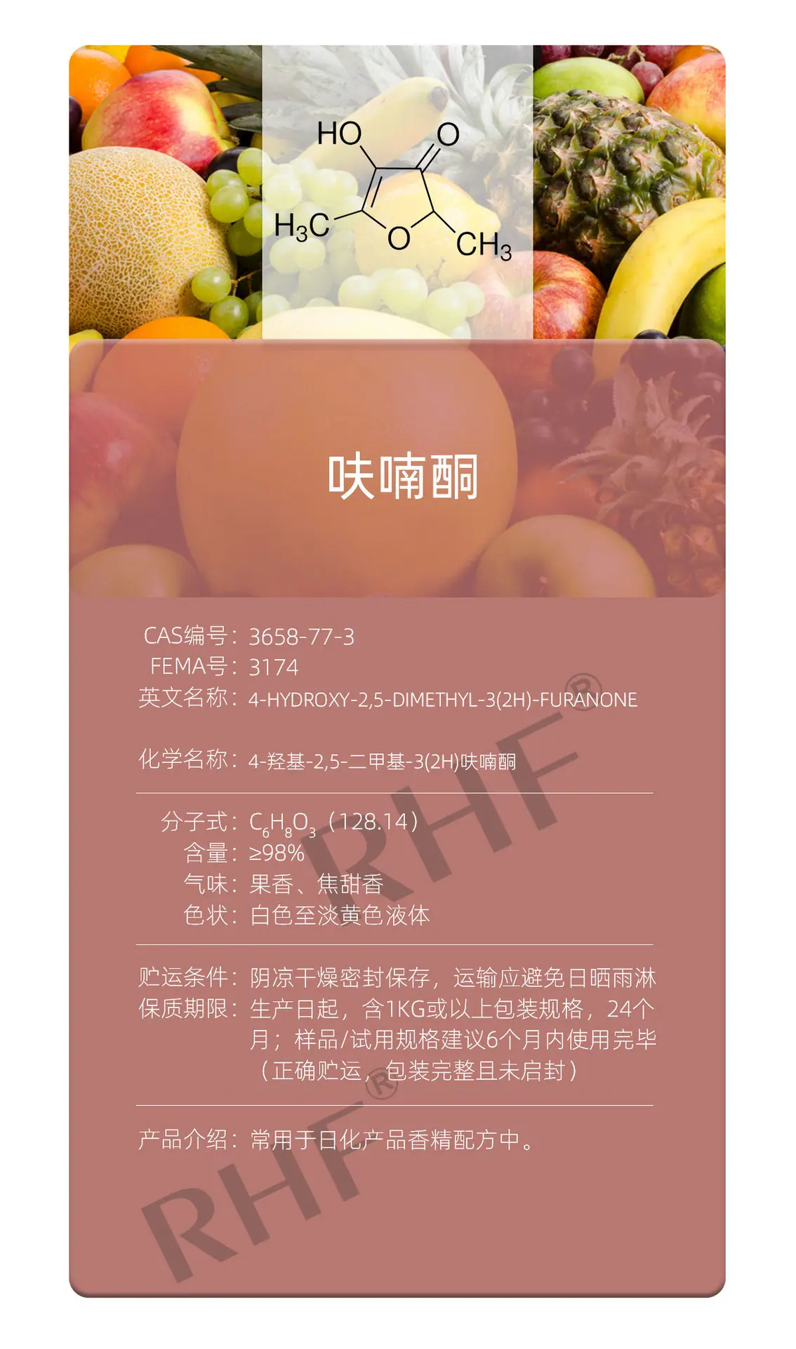 Compra Rhf Especia Furanona Cetona de Piña Cas3658-77-3 Furaneol Aroma Dulce al por mayor en Joom.pro