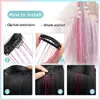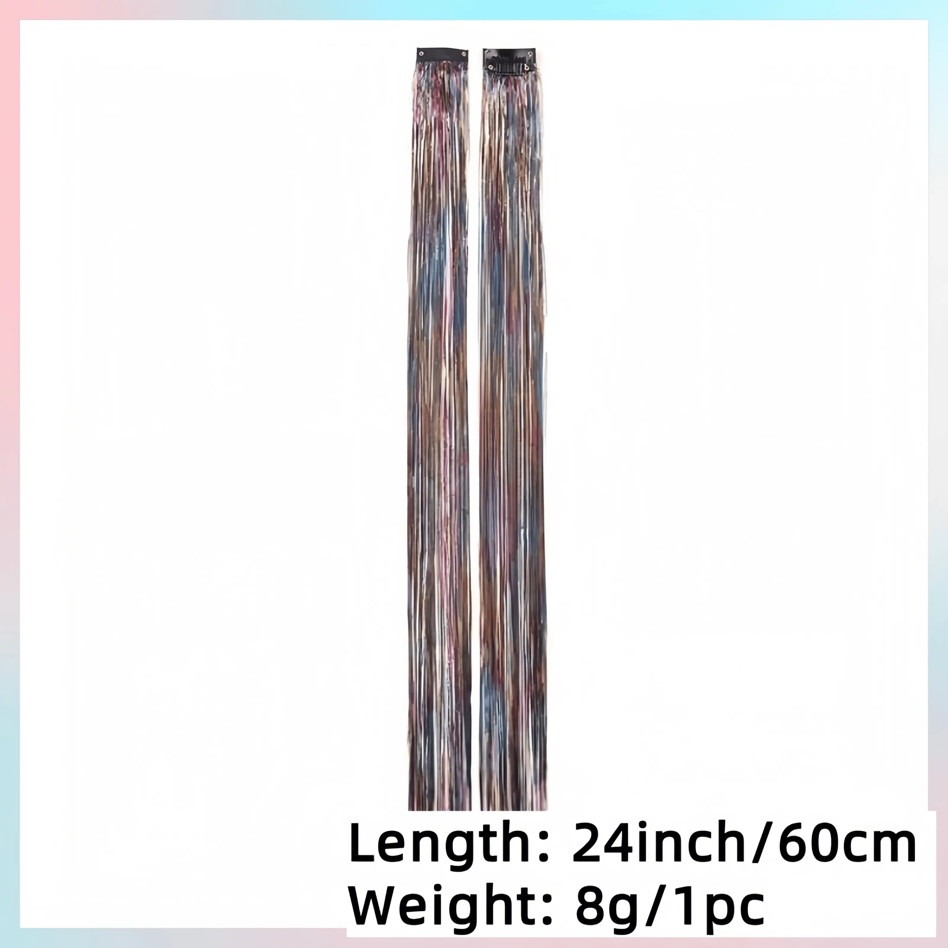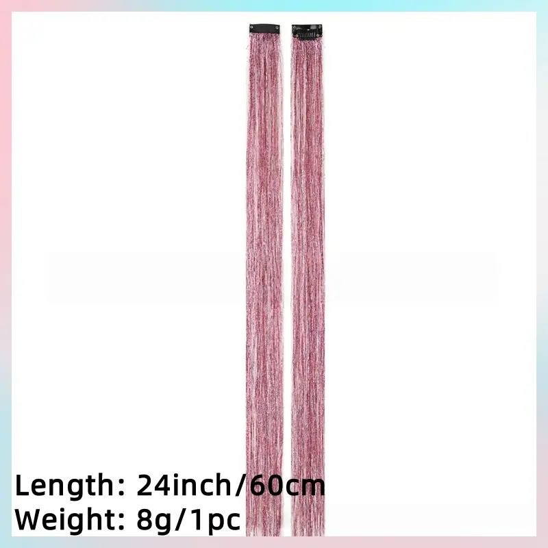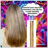 Este es un tipo de extensión de cabello de colores con láser - roscada. Utiliza una sola pinza recta de BB con clip para fijación. Los hilos del cabello tienen un efecto láser y pueden emitir una luz brillante bajo iluminación. El diseño de un solo clip permite una instalación y extracción rápidas, añadiendo fácilmente un brillo único y elementos de color al peinado.