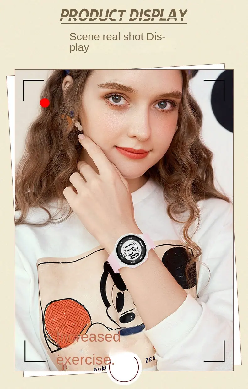 Función: Resistencia al agua 50 metros (50ATM), adecuado para natación y actividades acuáticas generales; Pantalla luminosa LED, fácil de ver en ambientes con poca luz; movimiento electrónico de precisión; La duración de la batería es de aproximadamente 3 años; Los números se muestran claramente.