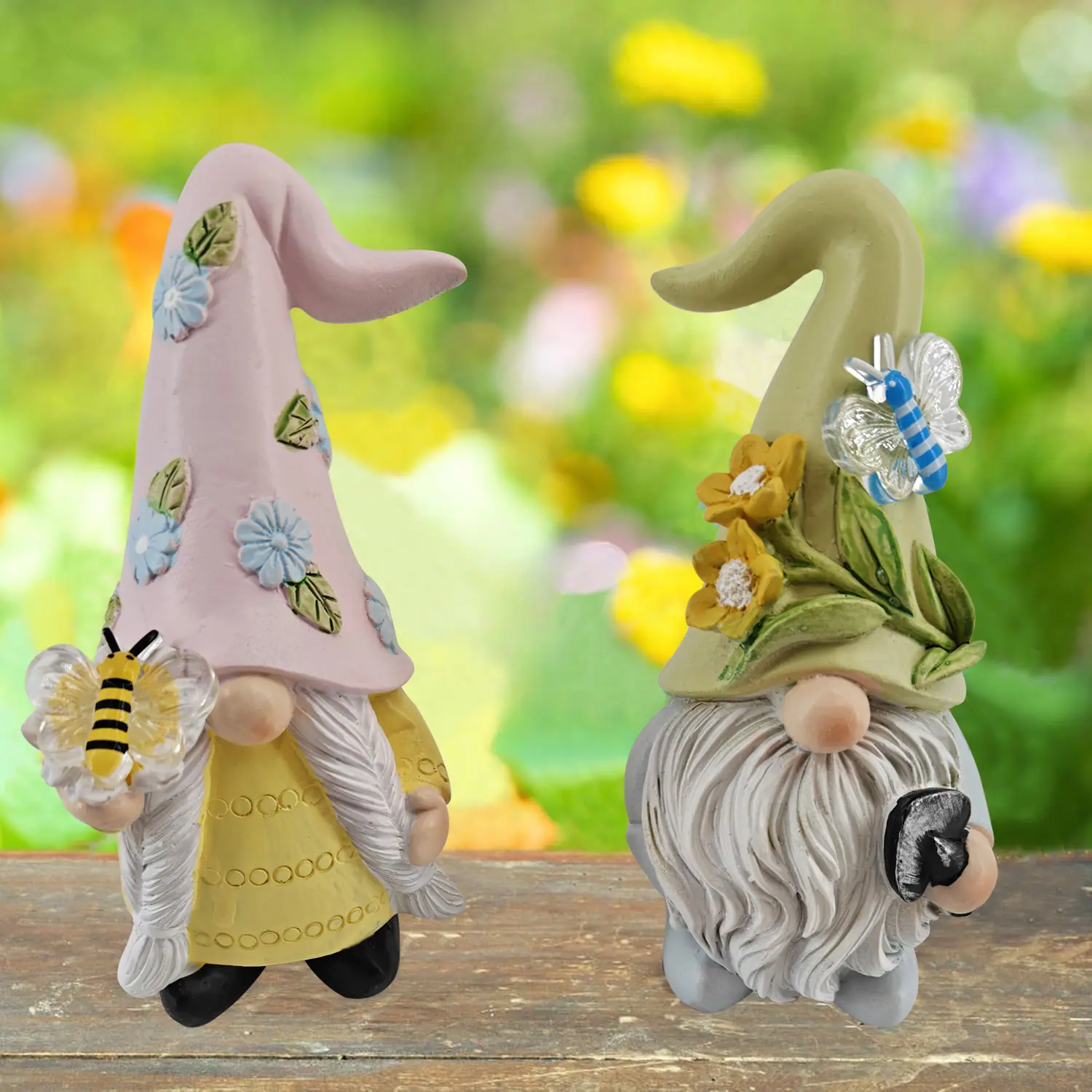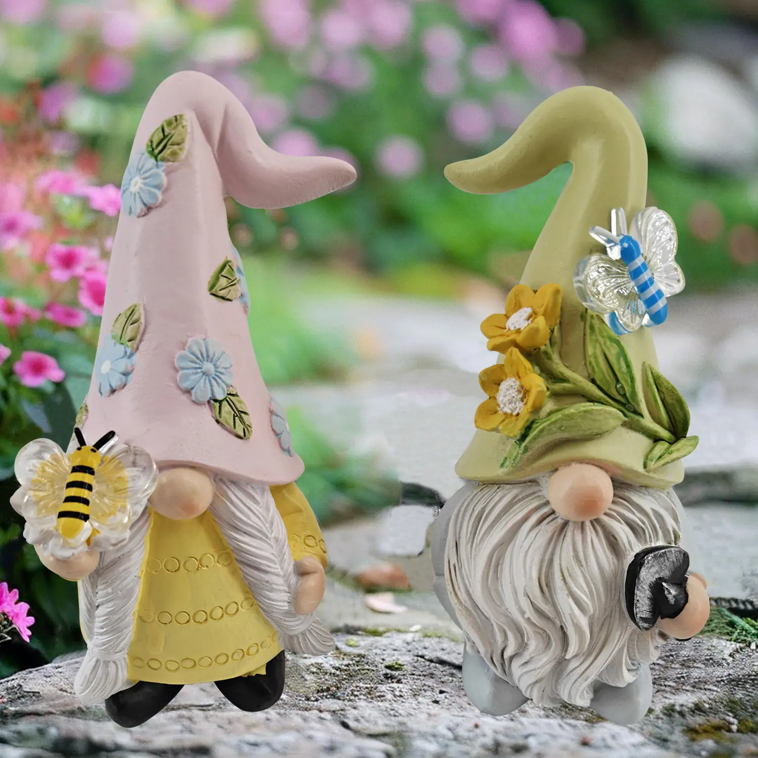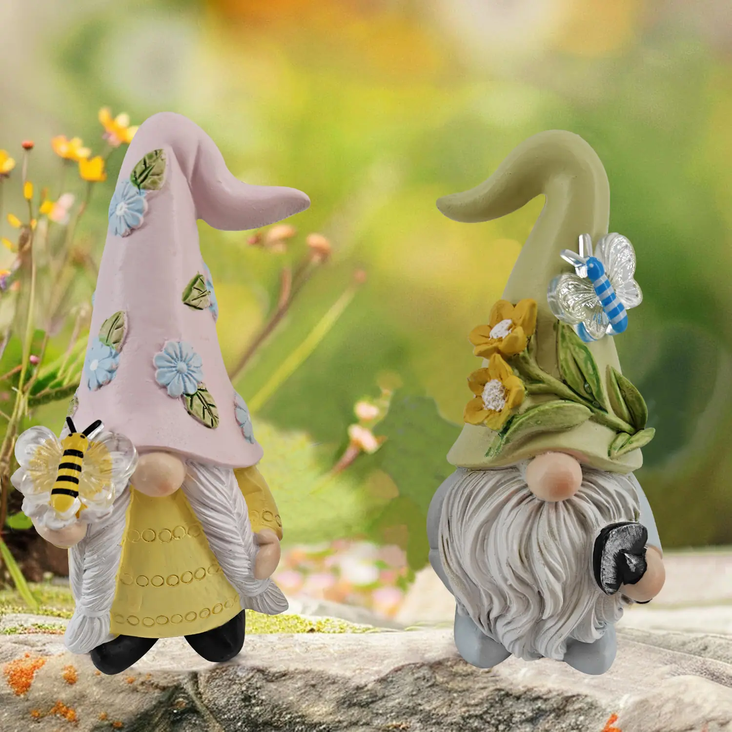 2 piezas/juego Estatuas de Gnomo de Primavera Estatuas de Resina Decoración para Interior/Exterior para el Hogar