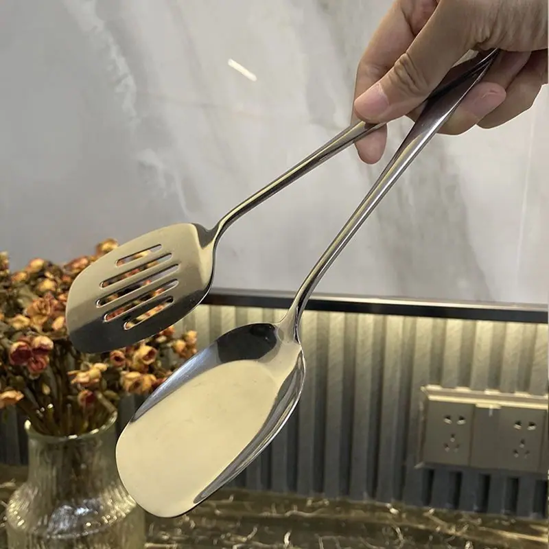 SUS 201 23cm/44g Mini Espátula Pequeña Uso Diario Doméstico Salteado Salteado Espátula Ranurada y Sólida ✅ Material: Acero inoxidable de grado alimenticio — resistente al óxido, resistente al calor y lo suficientemente robusto para la cocina diaria ✅ Diseño: Mango ergonómico curvo que se adapta cómodamente a tu mano; superficie lisa y pulida es fácil de limpiar (sin comida pegándose) ✅ Usos: Ideal para saltear, hervir, freír y servir — un juego básico imprescindible para cocinas domésticas, restaurantes o espacios de alquiler
