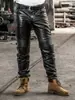 Pantalones HARLEY ANGEL de cuero genuino engrosado para hombre, protectores montables, pantalones casuales de cuero de vaca de capa superior para motocicleta