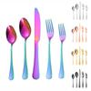 Juego de vajilla de acero inoxidable con cuchillo y tenedor para carne, juego portugués de 5 piezas, cuchara mercerizadora, palillos y logotipo verde oscuro.