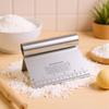 Cuchillo de acero inoxidable para cortar harina y fideos con raspador de polvo integrado, herramienta para hornear y cortar masa.