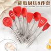 Juego de Utensilios de Cocina de Acero Inoxidable de 8 Piezas para Alimentos, Olla de Silicona que No Daña, Espátula de Cocina con Gancho, Cepillo, Cuchara para Mezclar, Utensilios de Cocina
