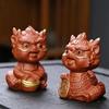 Yixing arena púrpura adornos para mascotas de té al por mayor colgante creativo para juego de té mineral crudo túnica roja asa en forma de dragón
