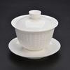 Porcelana blanca de alta calidad juego de tres piezas Tazón con tapa moderno minimalista para el hogar tazón de té taza de té juego de té kung fu traje al por mayor LOGO