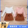 Amazon estilo europeo y americano para niños otoño e invierno top de manga larga de algodón piqué falda de pana conjunto para niñas Venta al por mayor