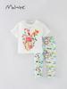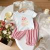 [Stock Listo] Traje para Niñas 2024 Verano Nuevo Traje para Niños Bebé Dibujos Animados Camiseta con Volantes Pantalones